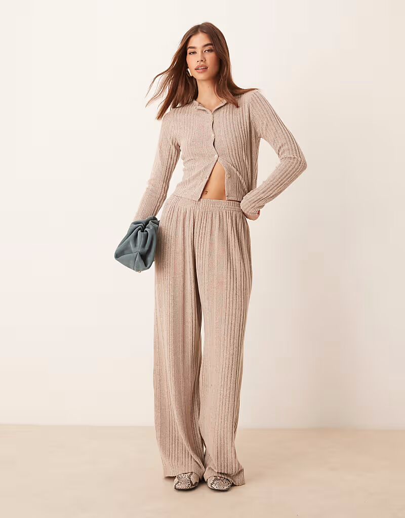 Кардиган в рубчик с начесом Miss Selfridge, серо-бежевый