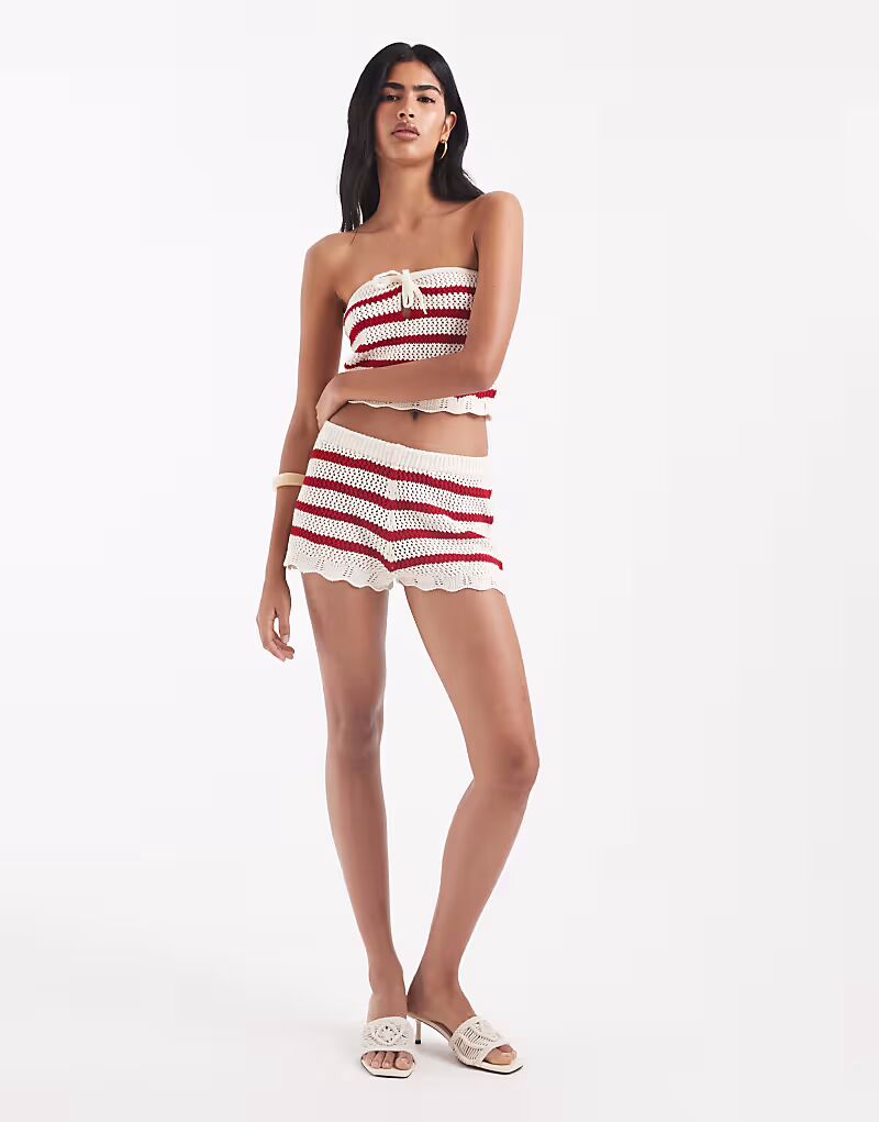 Вязаные полосатые шорты в красном цвете Miss Selfridge