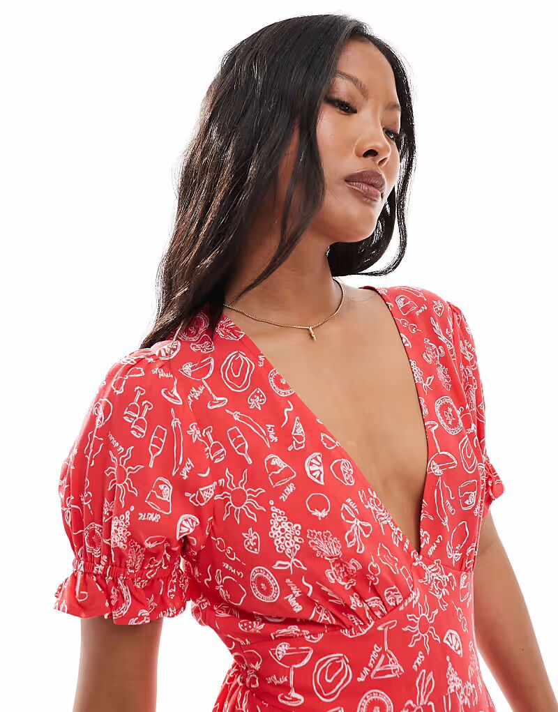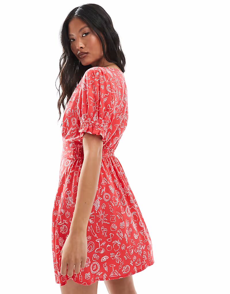 Платье-мини Petite Spun с красным праздничным принтом Miss Selfridge Petite