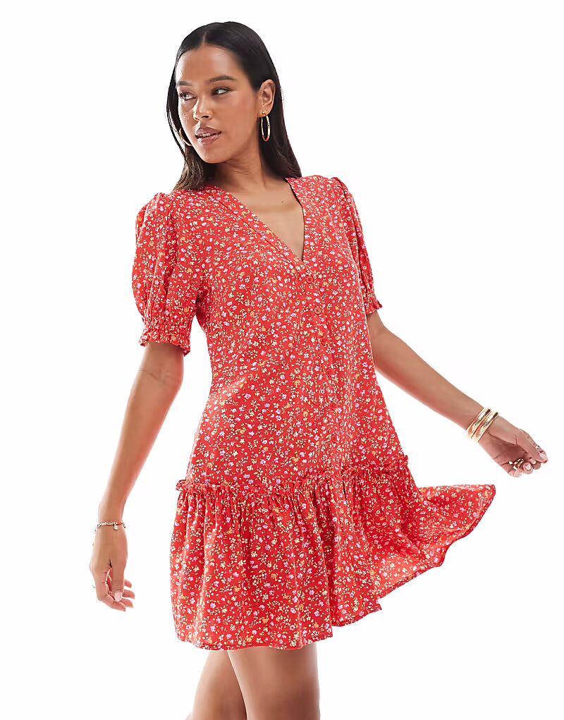 Платье-халат с принтом в красную клеточку Miss Selfridge