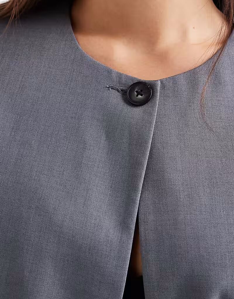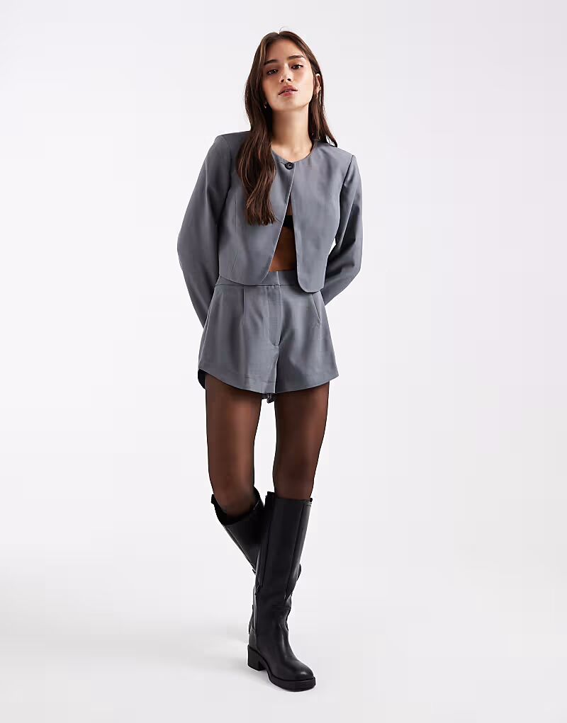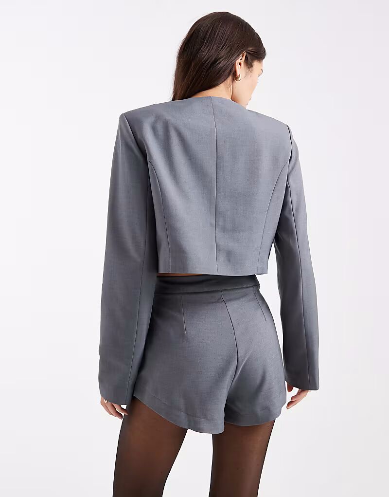 Укороченный блейзер, сшитый на заказ, серого цвета Miss Selfridge