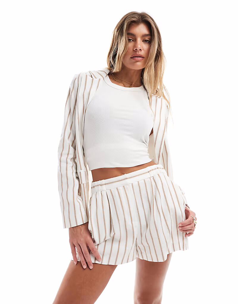Льняные шорты в нейтральную полоску Miss Selfridge