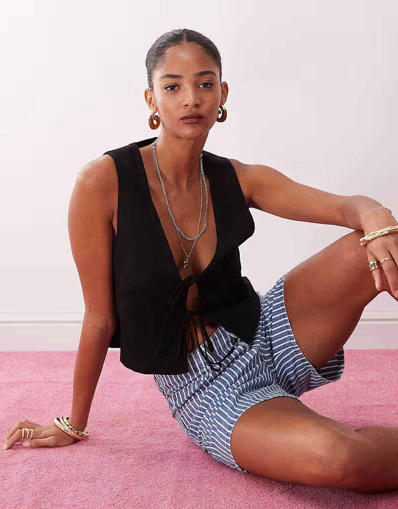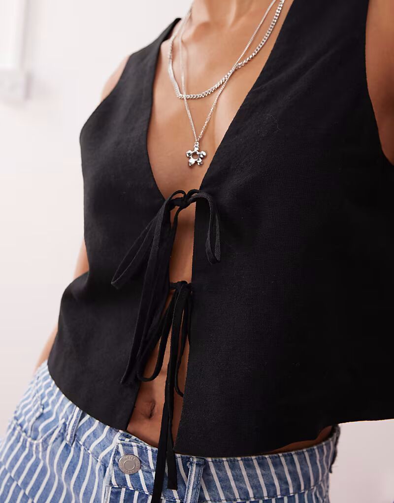 Льняной жилет черного цвета Monki