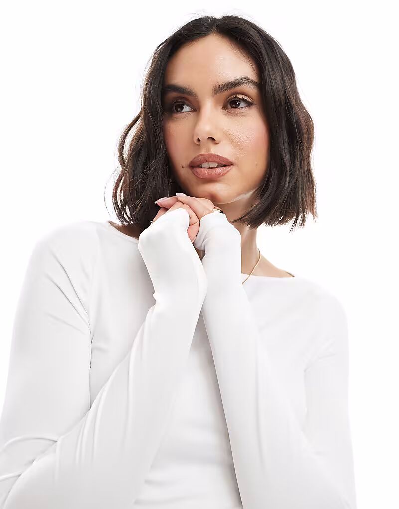 Белый топ с длинными рукавами и вырезом-лодочкой Monki
