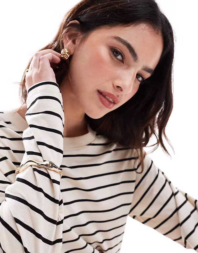 Топ oversize с длинными рукавами в однотонную полоску Monki