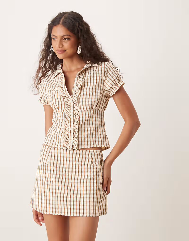 Коричневая мини-юбка в клетку Solla Motel 2 589₽