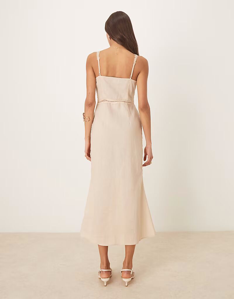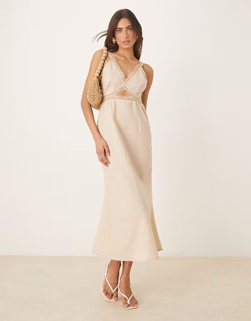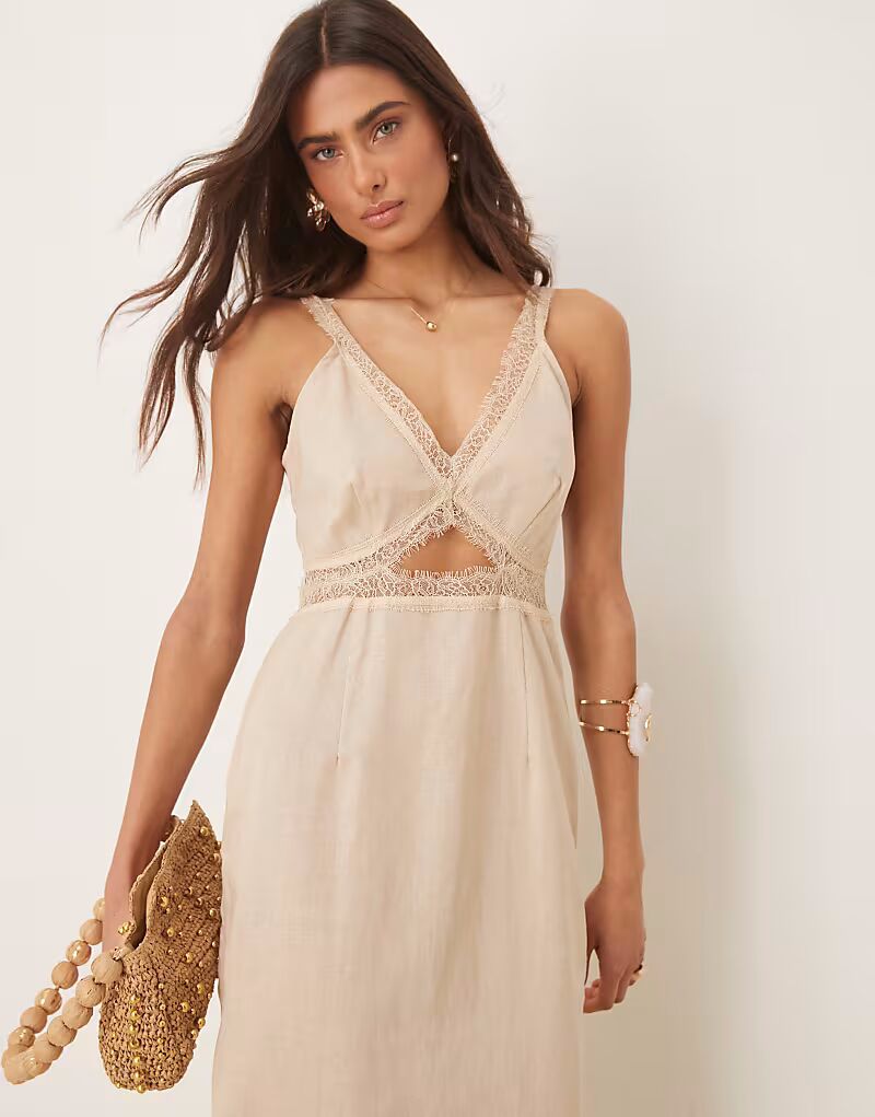 Платье мидакси Mimi из льна с вырезами Never Fully Dressed, бежевый