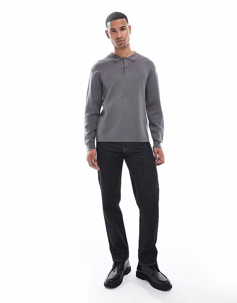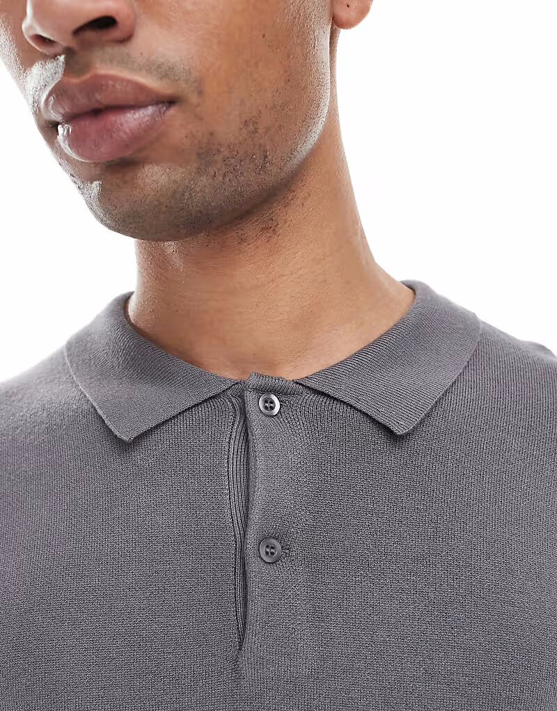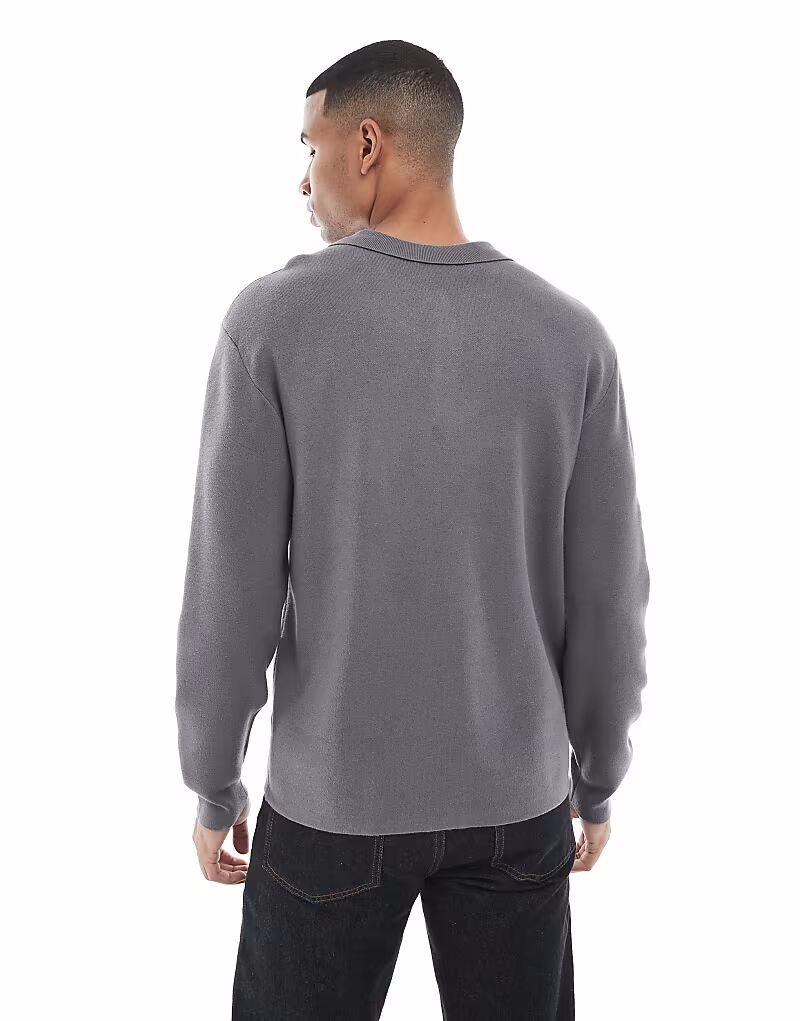Джемпер-поло плотной вязки серого цвета New Look