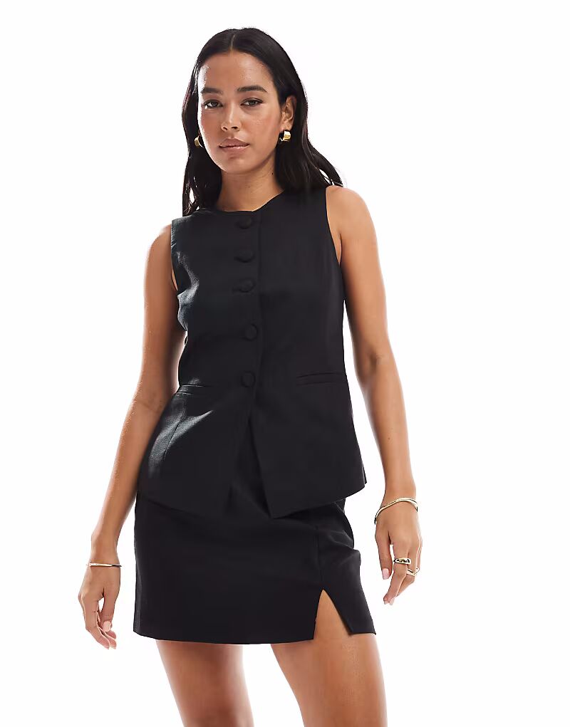 Мини-юбка из льна черного цвета New Look