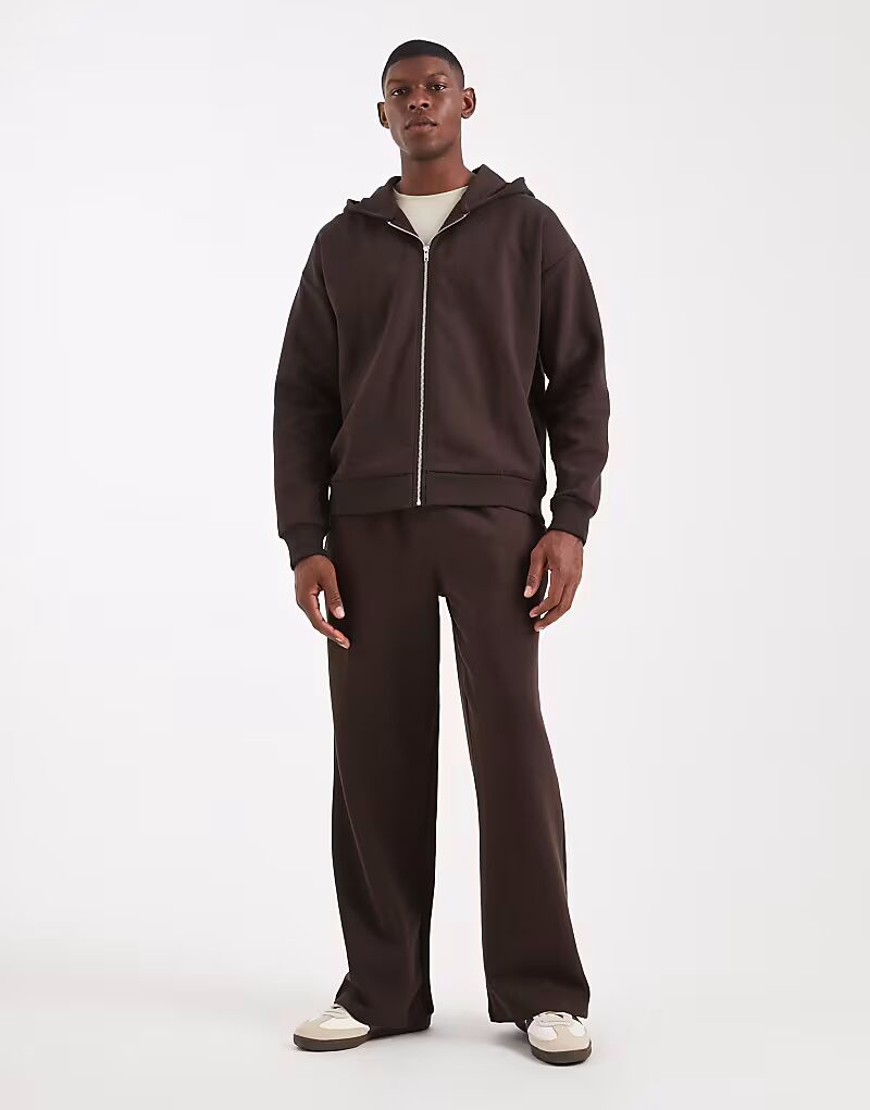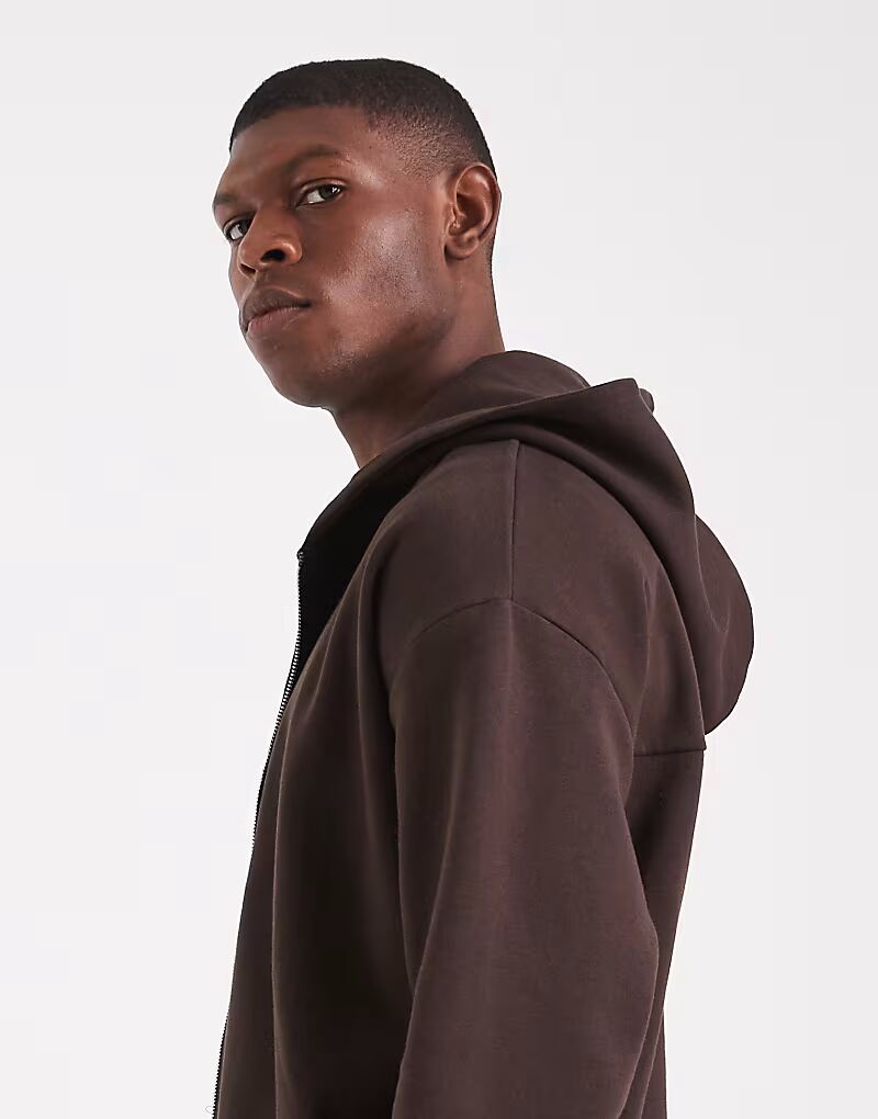 Толстовка с капюшоном из плотной ткани на молнии темно-коричневого цвета New Look