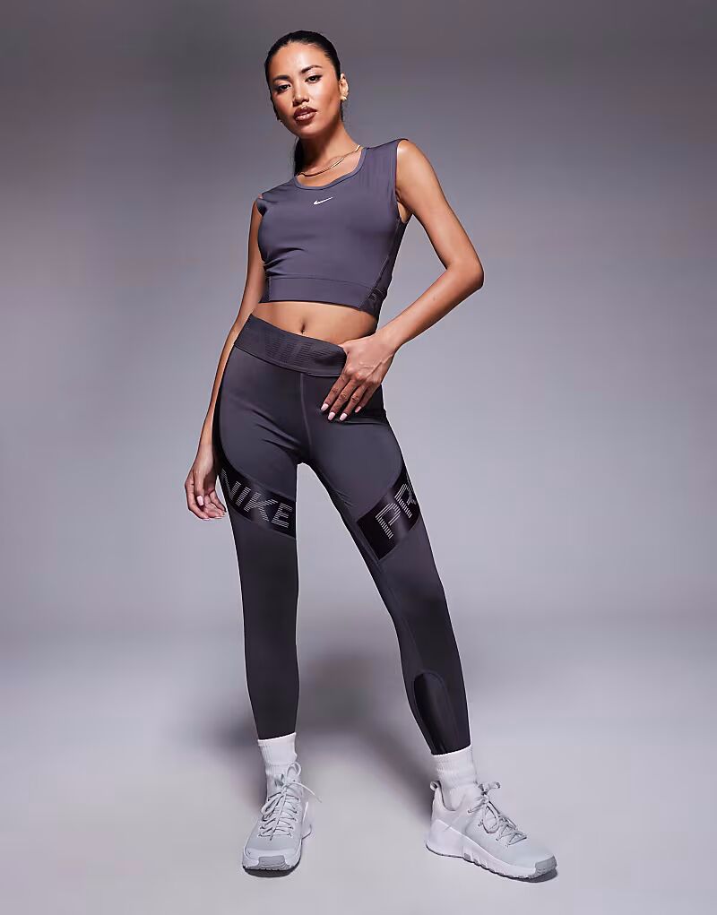 Укороченная майка Nike Pro Training Dri-FIT темно-серого цвета Nike Training