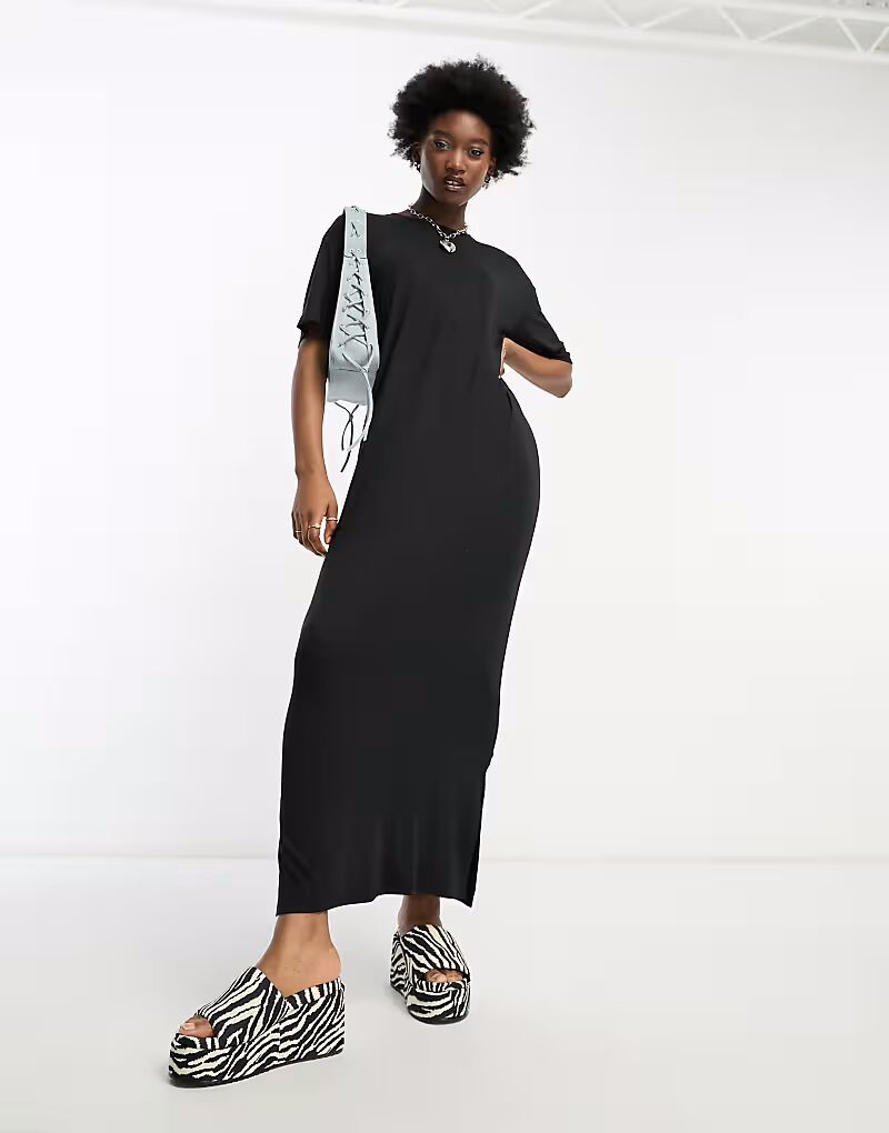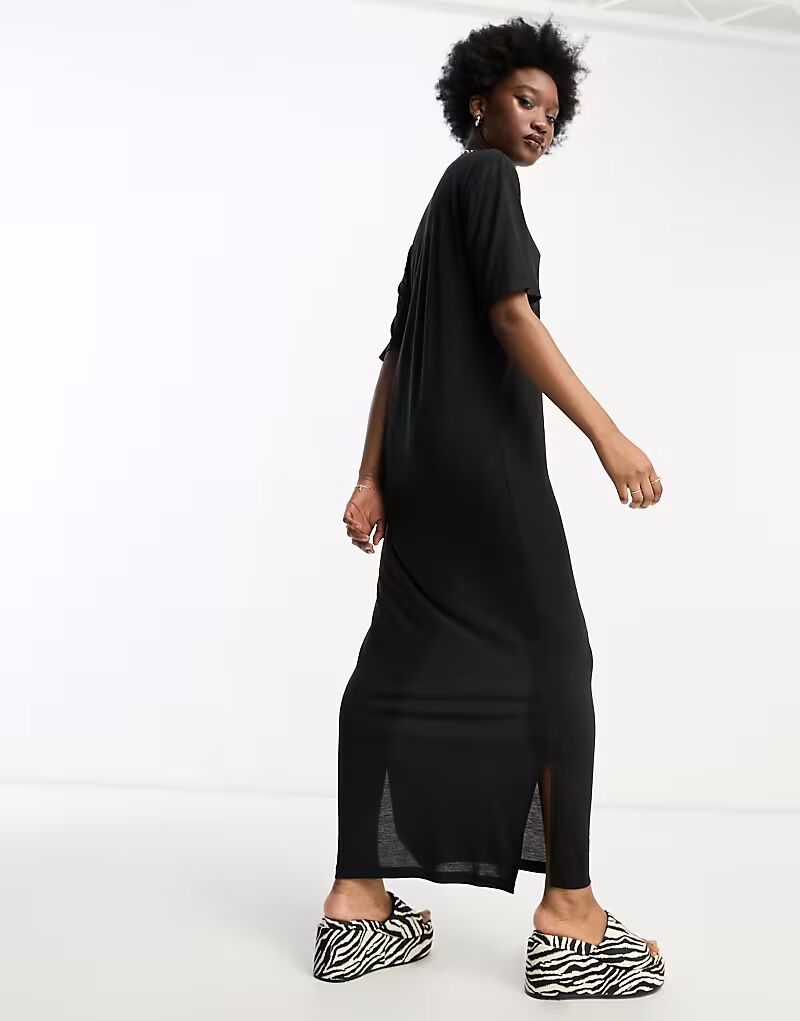 Платье-футболка макси черного цвета Noisy May