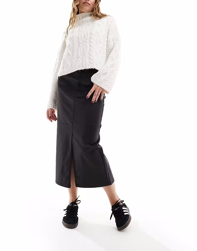 Юбка миди с покрытием и разрезом спереди, черного цвета Object