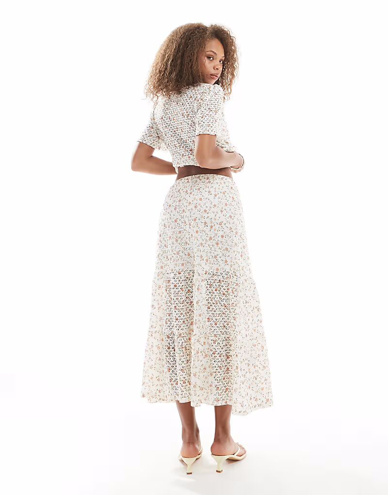 Юбка-бохо с цветочным принтом в кремовом цвете Object