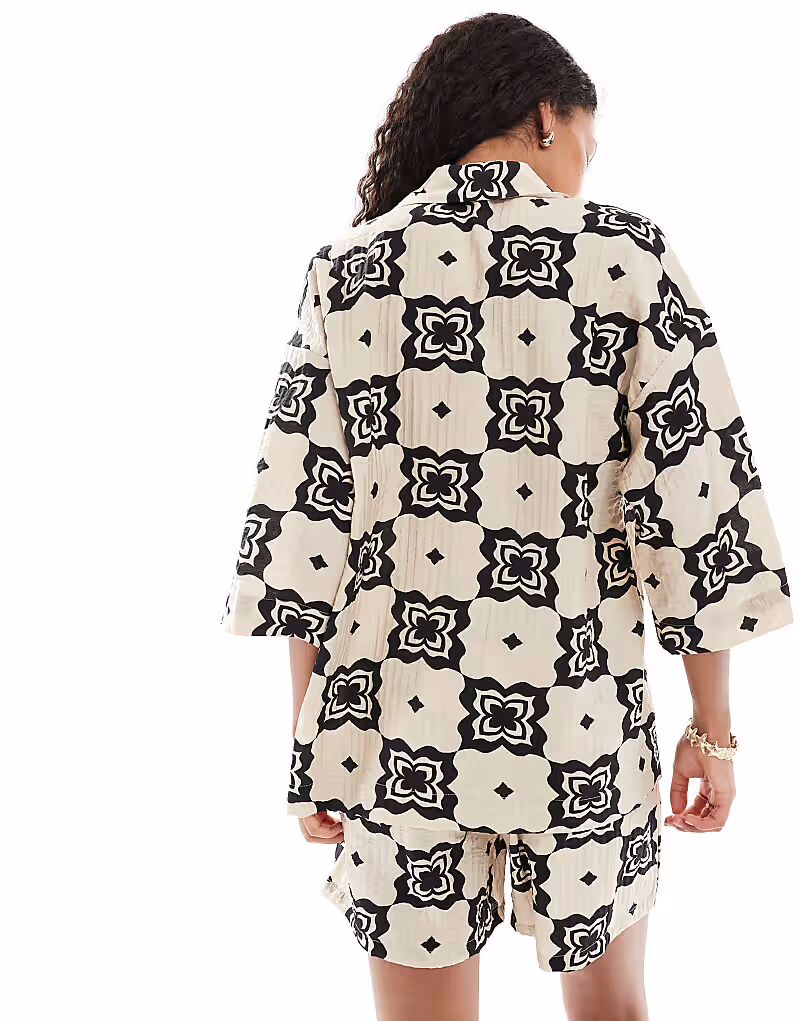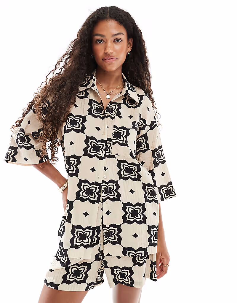 Рубашка свободного кроя с однотонным плиточным принтом Object