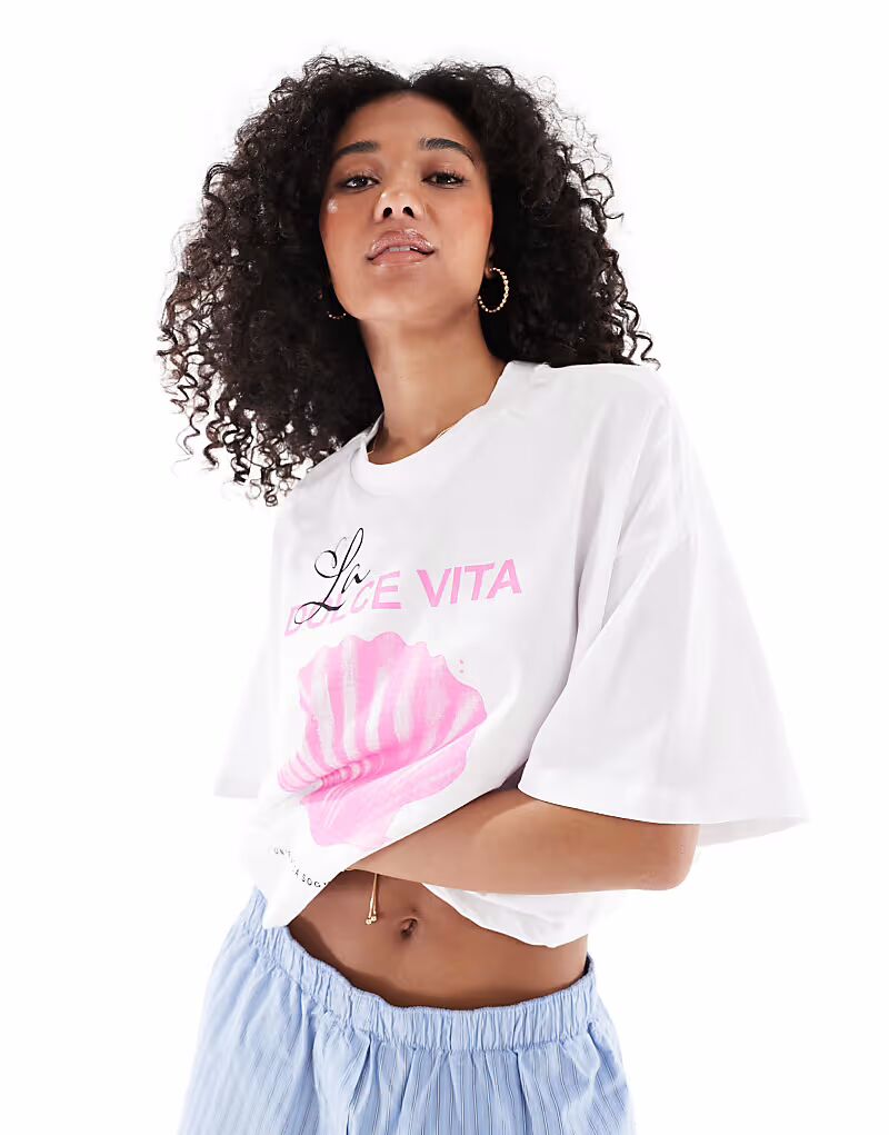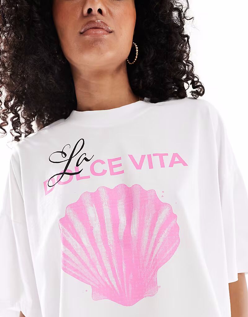 • Текст «La Dolce Vita» и принт с изображением ракушек спереди