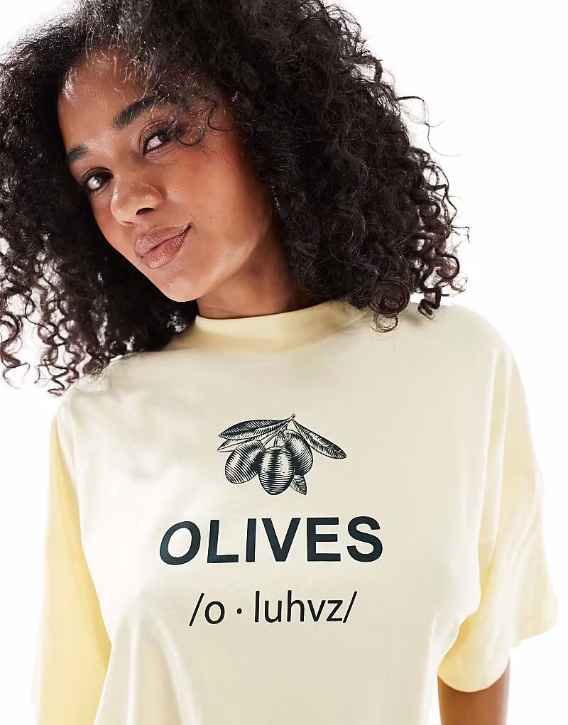 Футболка с принтом оливкового цвета в пахте Only