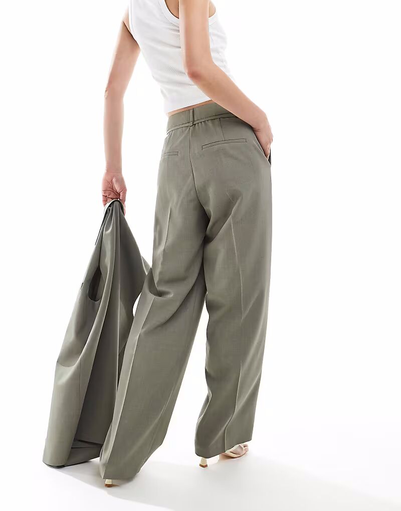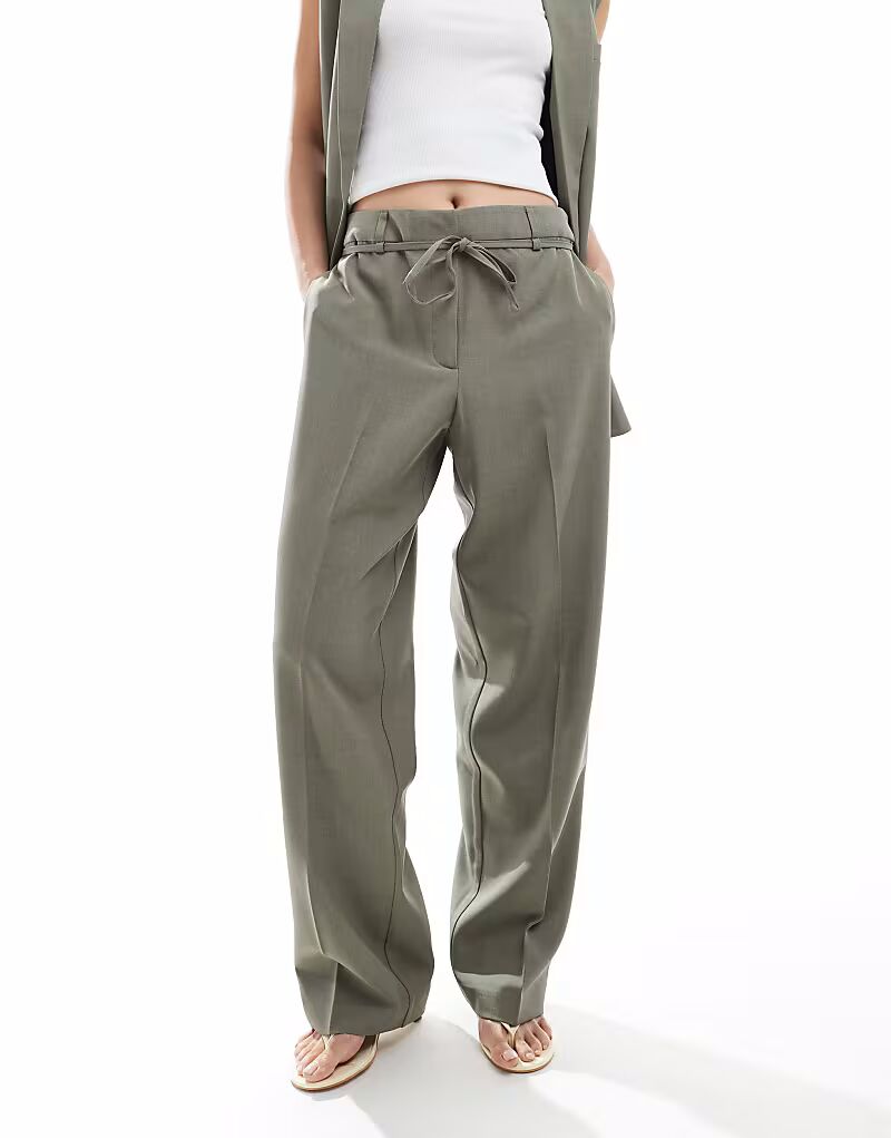 Прямые брюки со шнуровкой в ​​цвете серого шалфея Only 4 957₽