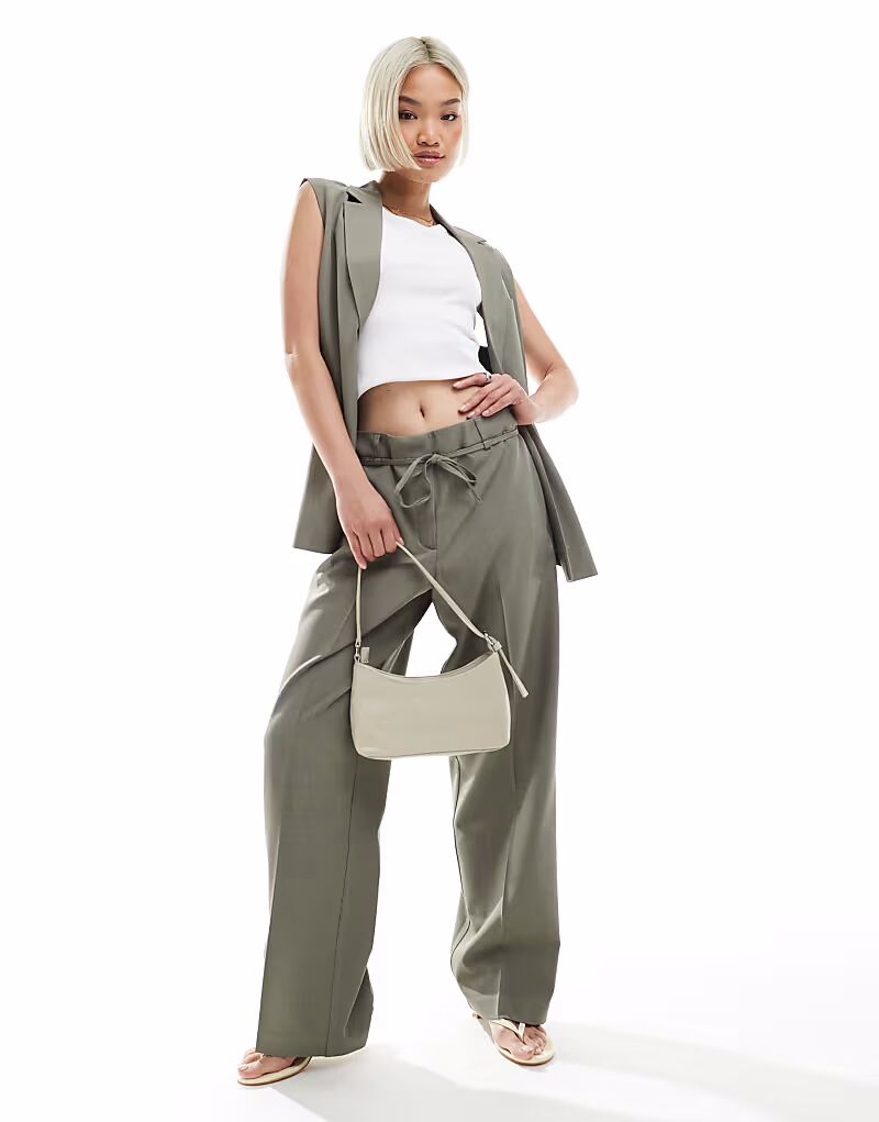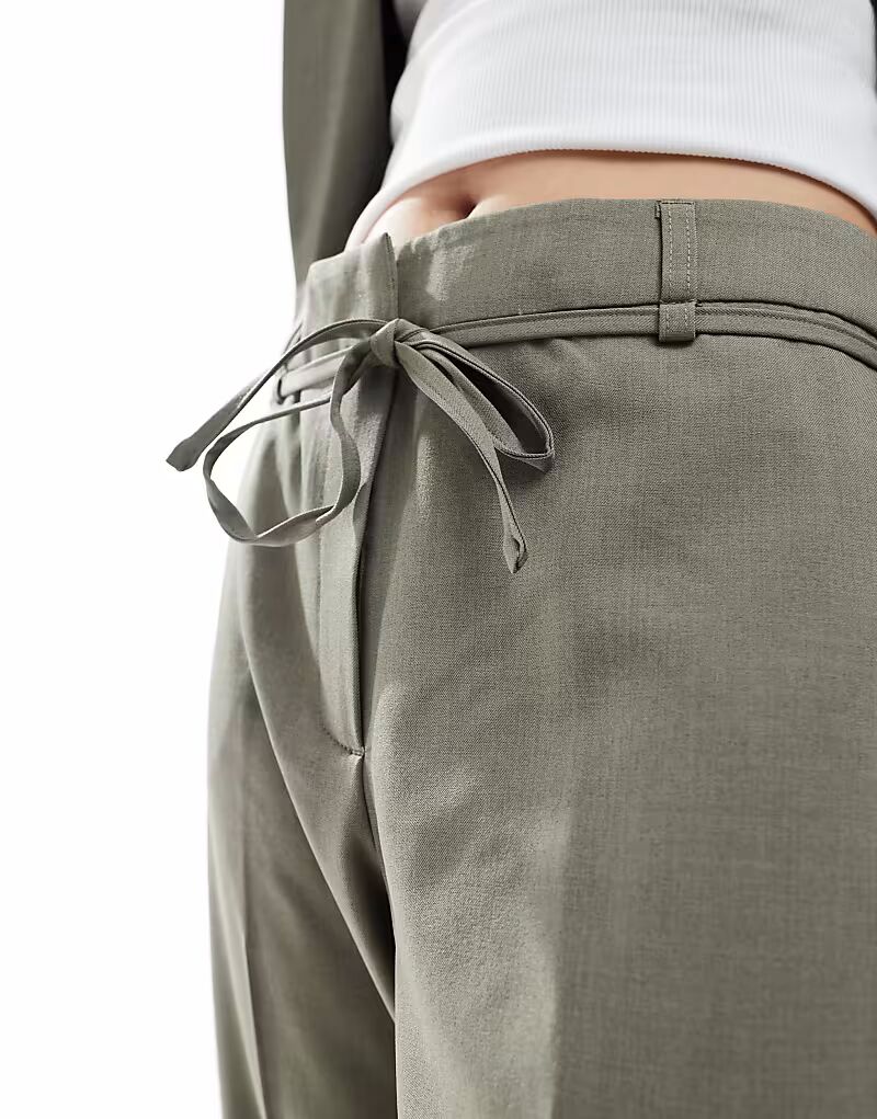 Прямые брюки со шнуровкой в ​​цвете серого шалфея Only