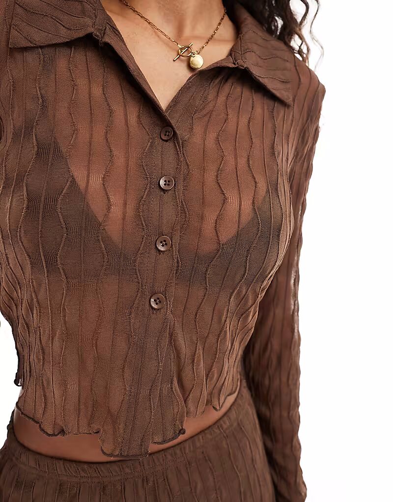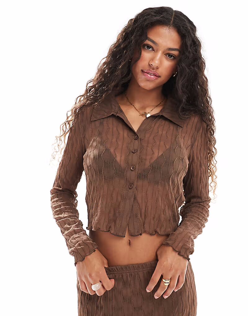 Фактурная прозрачная рубашка в коричневом цвете Only