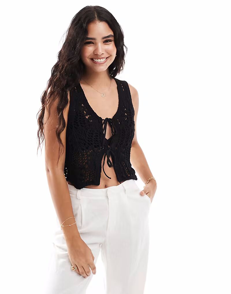 Топ крючком ТОЛЬКО спереди, черного цвета Only