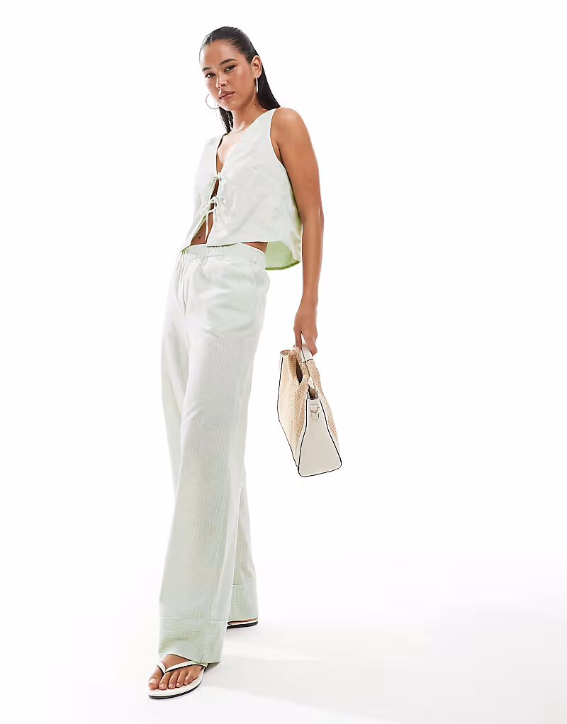 Широкие брюки-боксеры в зеленую клетку Only