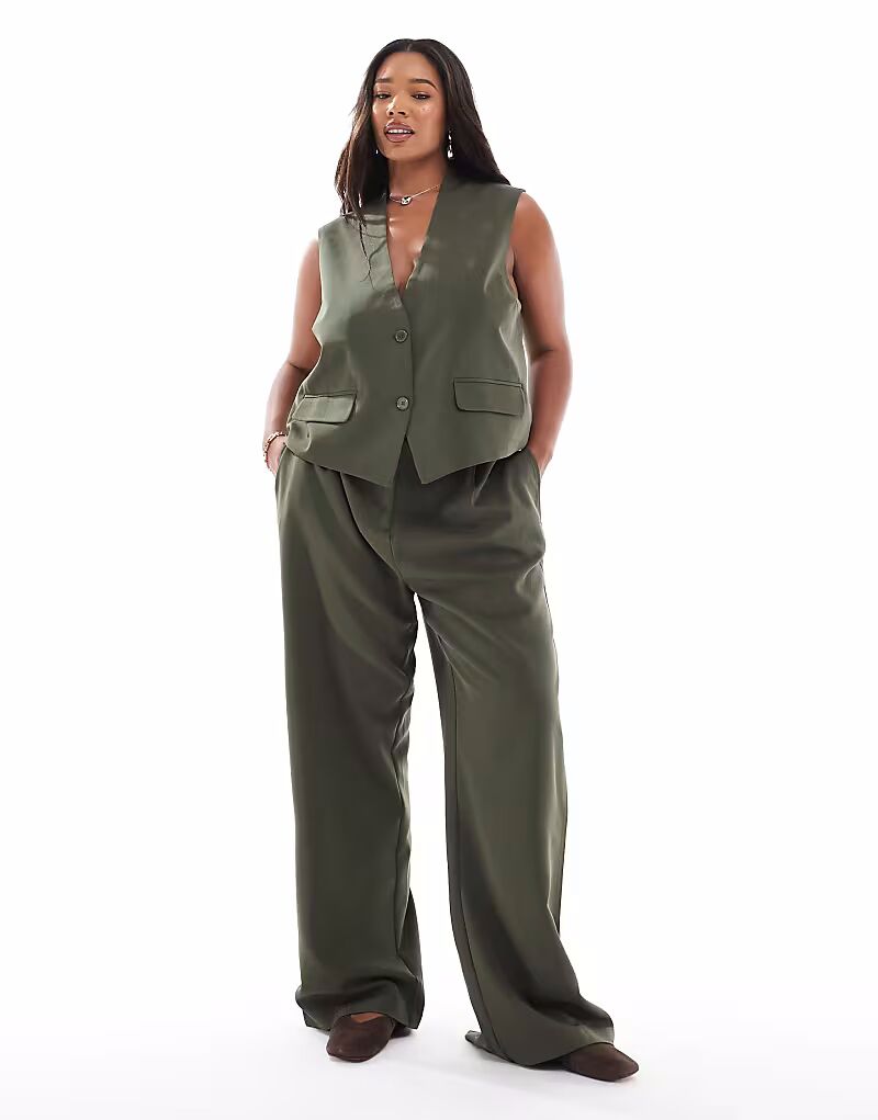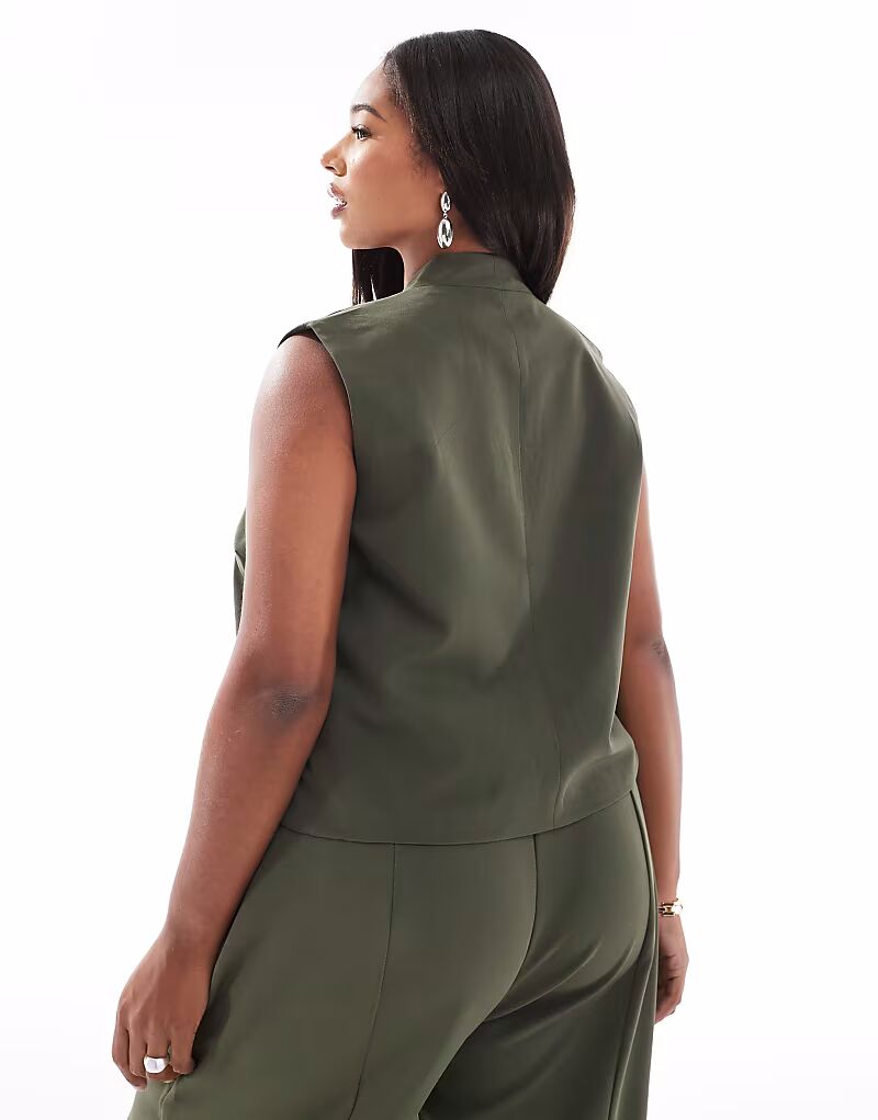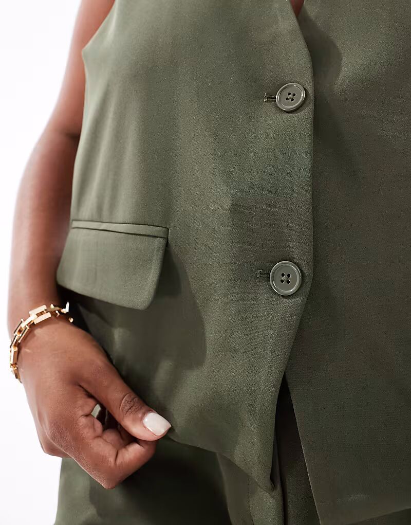 Жилет Pieces Curve, приталенный в цвете хаки Pieces Plus