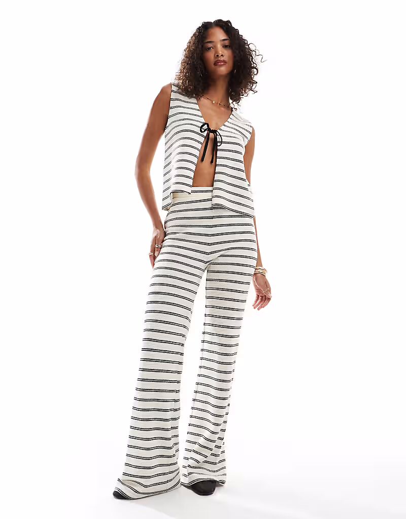 Широкие брюки крючком в однотонную полоску Pieces 4 838₽