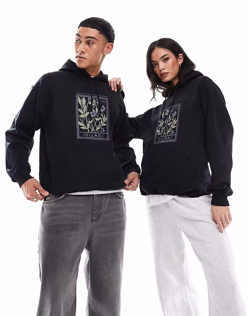 Худи с принтом Milano черного цвета Prnt