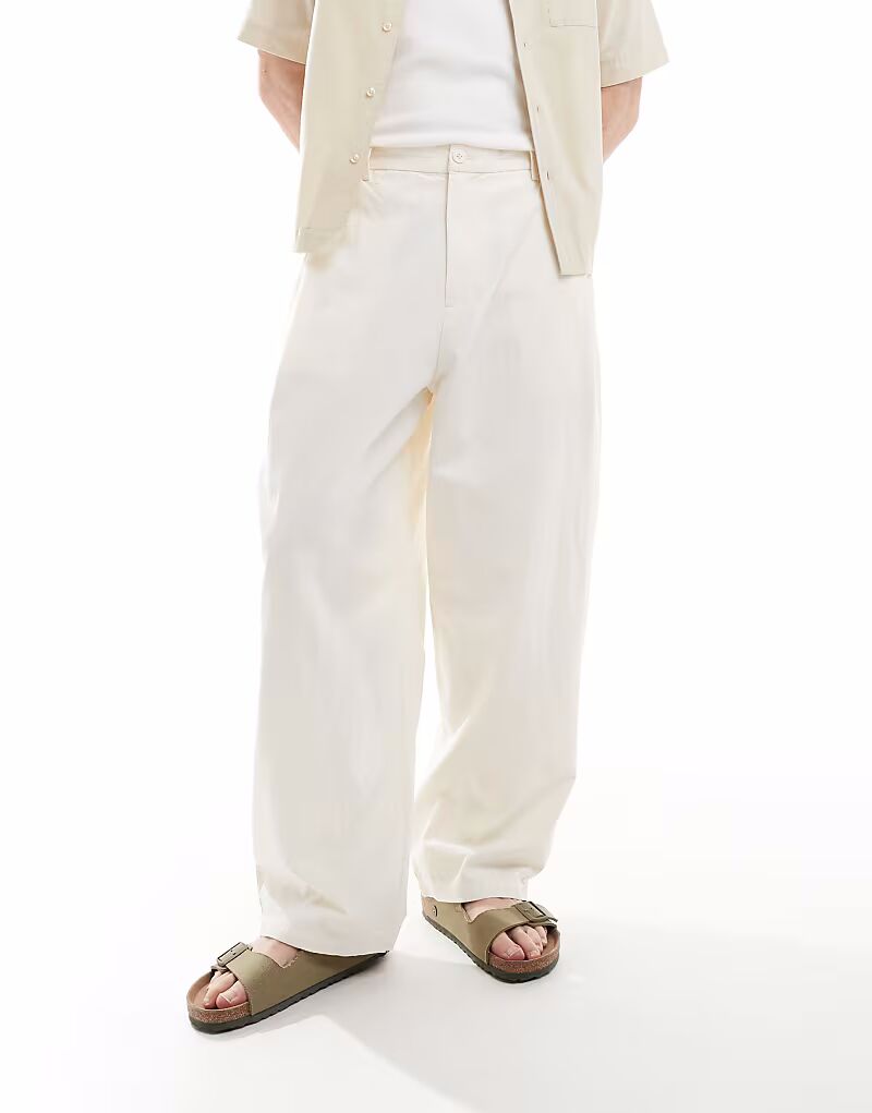 Брюки с жатым фактурным эффектом цвета кремовый Pull&Bear