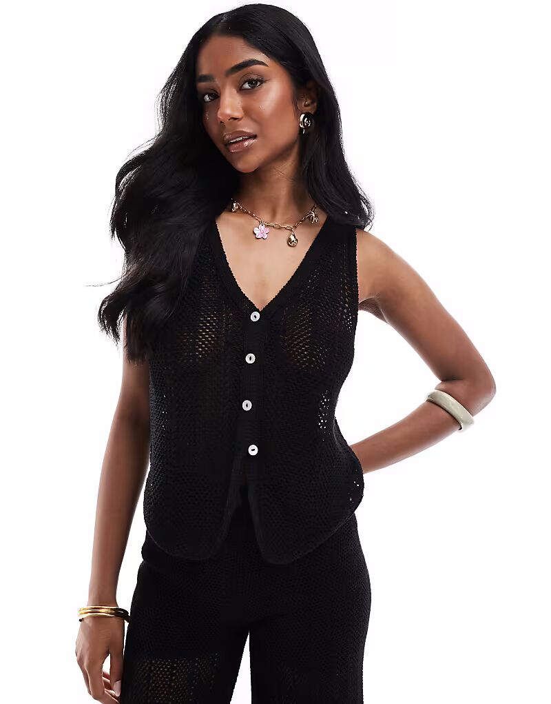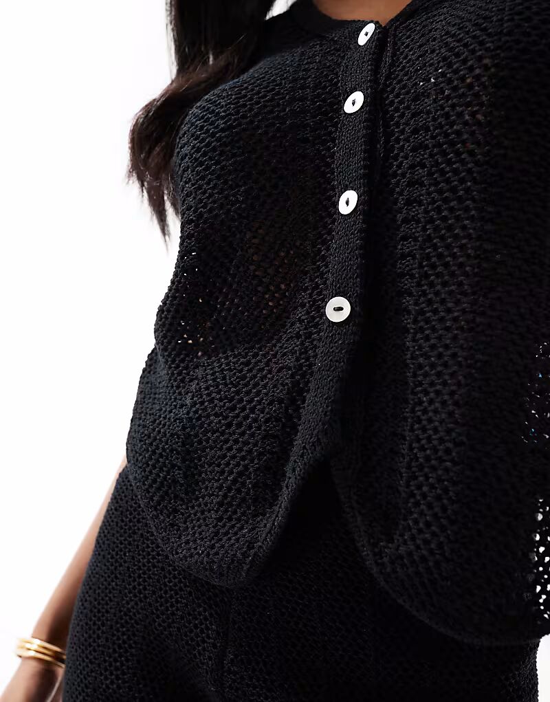 Вязаный крючком топ с завязками черного цвета Pull&Bear