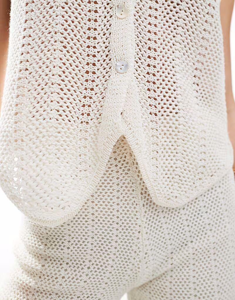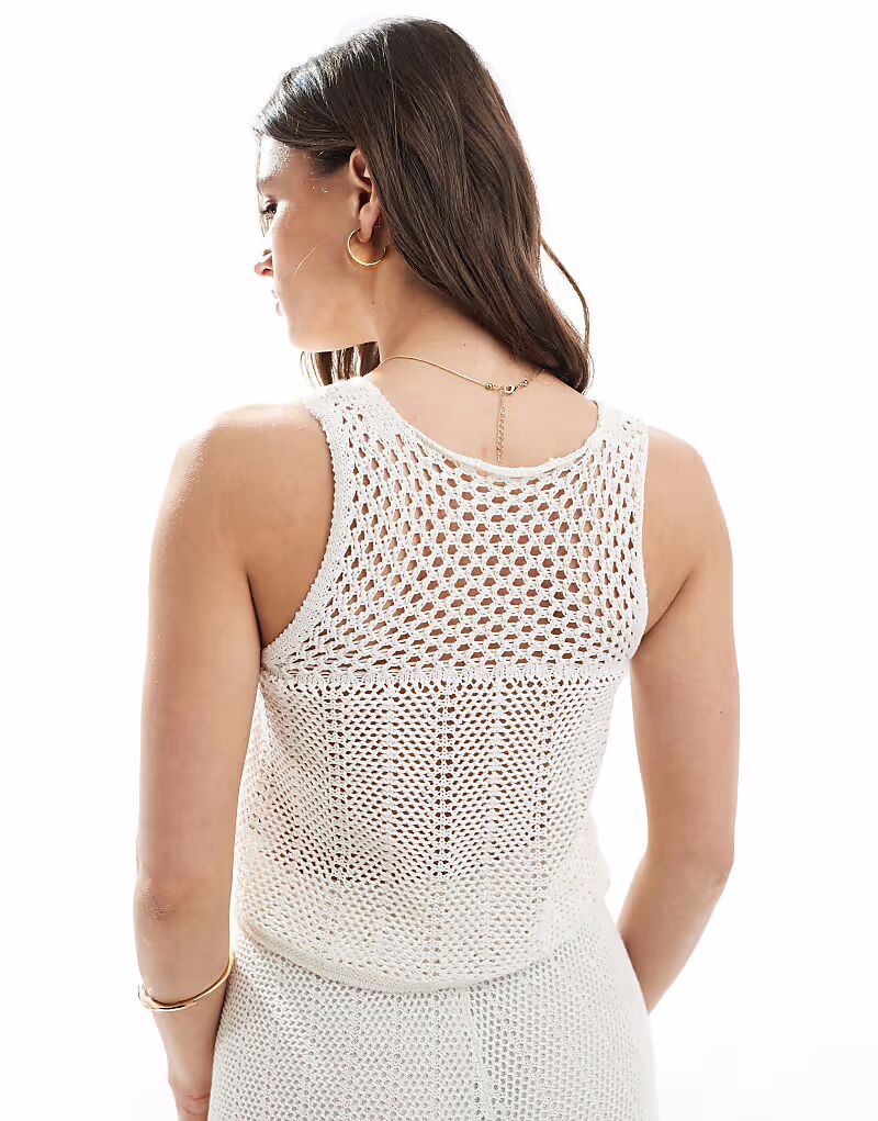 Вязаный крючком топ с завязкой белого цвета Pull&Bear