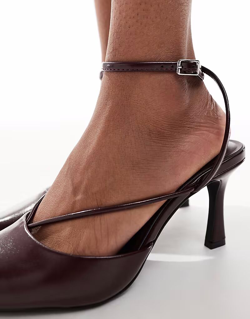 Туфли на каблуке с острым носком бордового цвета Pull&Bear