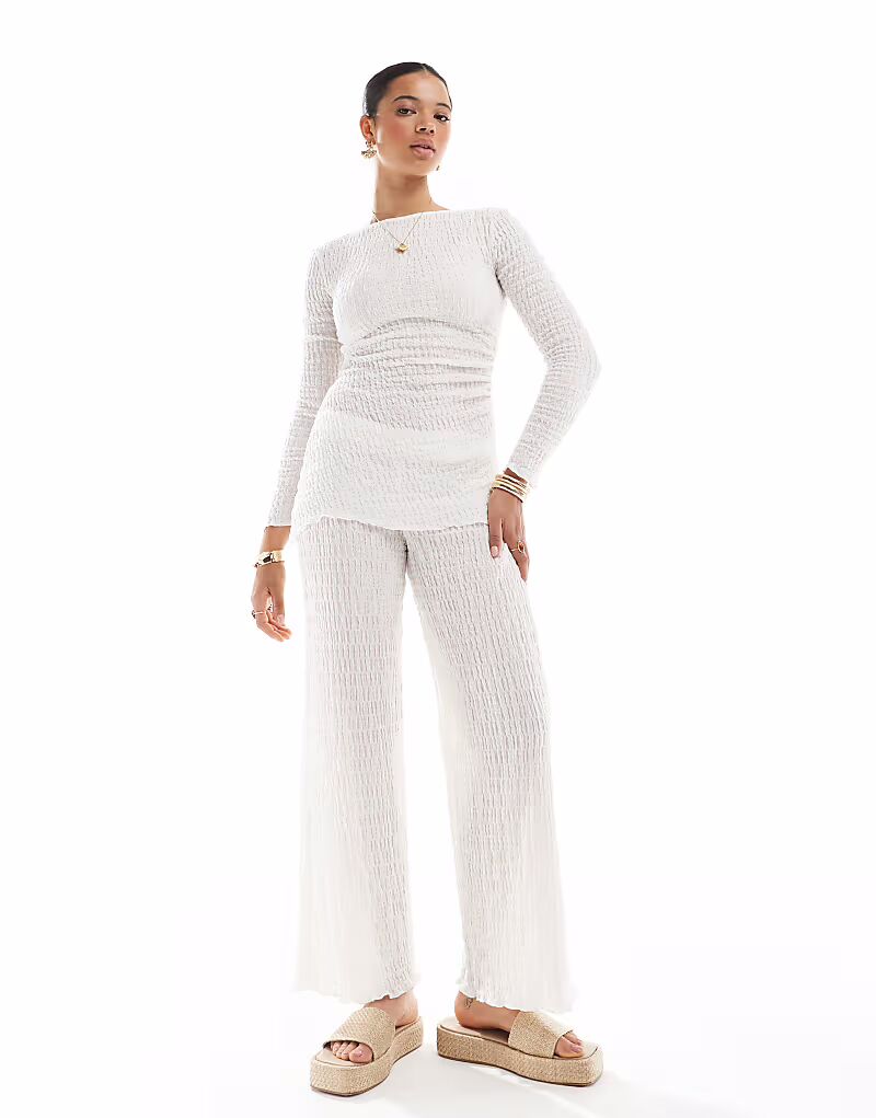 Широкие фактурные брюки цвета кремовый Pull&Bear