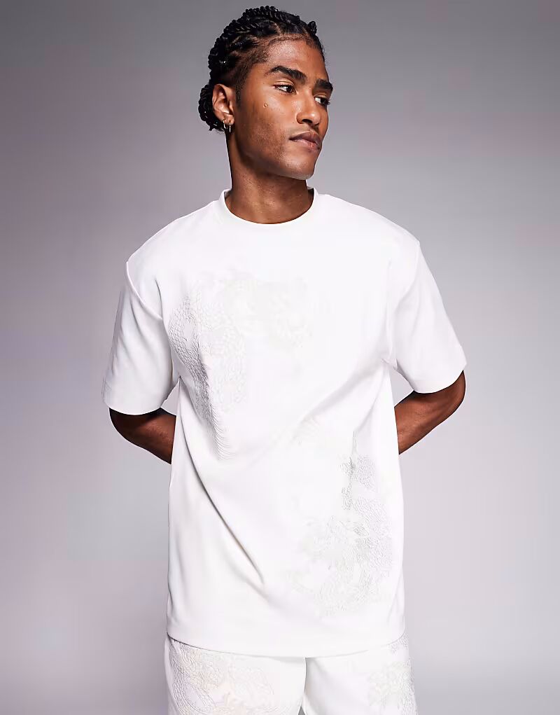 Футболка с вышитым драконом цвета кремовый River Island