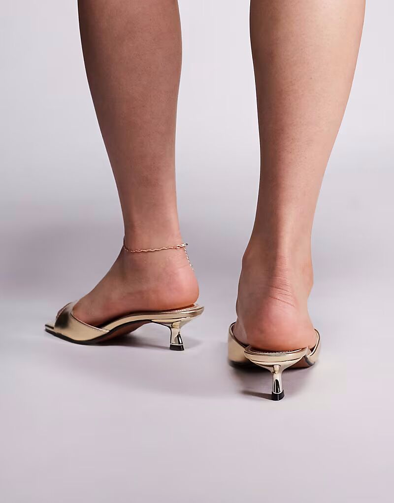Мюли на каблуке-рюмочке в золотистом цвете River Island