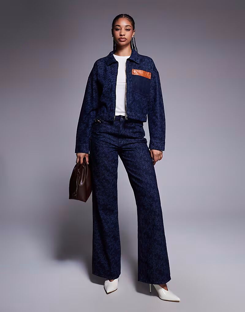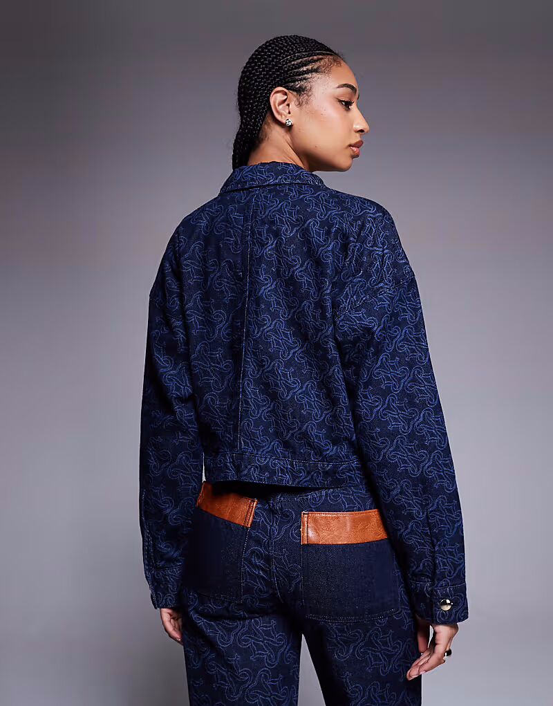 Джинсовая куртка с монограммой из темного денима River Island 6 971₽