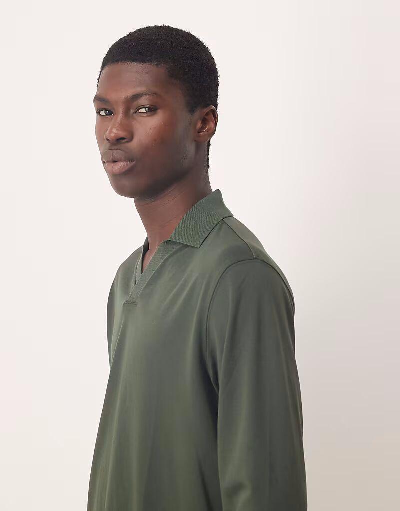Поло с разрезом на шее зеленого цвета Selected