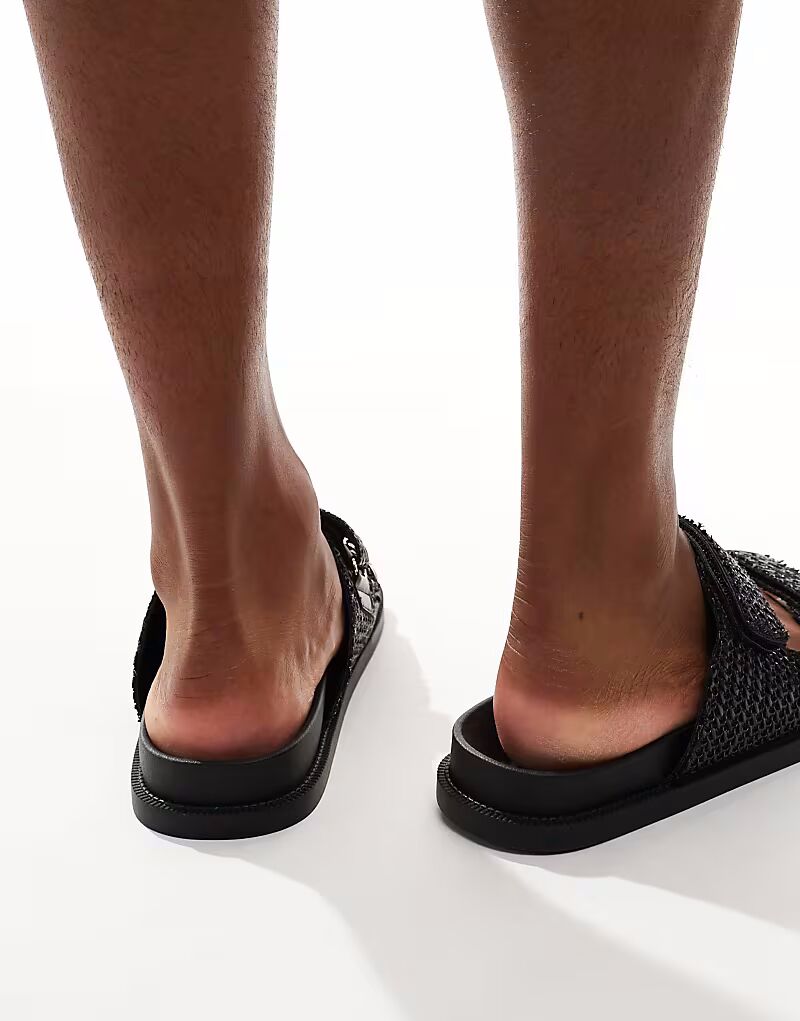 Сандалии Kidman с ремешками из рафии черного цвета Seqwl