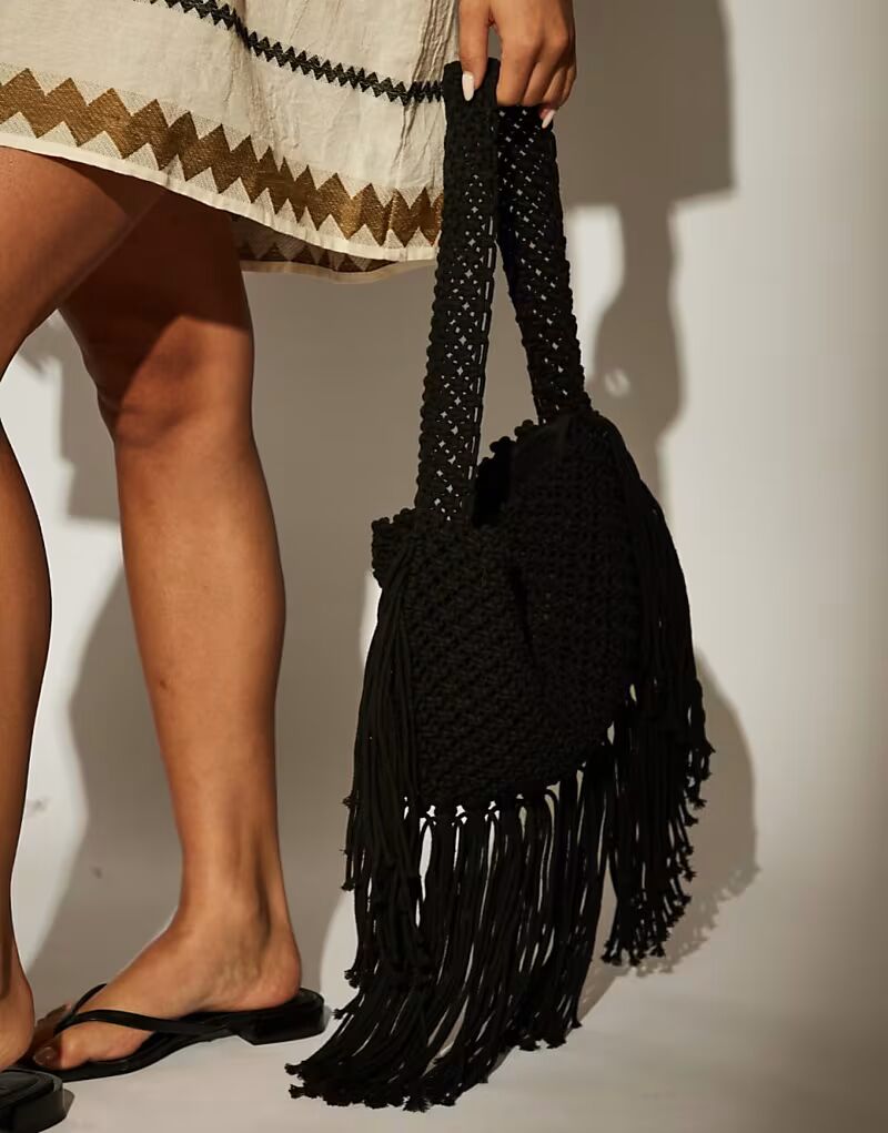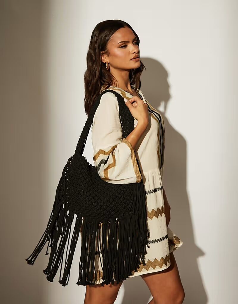 Сумка через плечо с бахромой черного цвета South Beach