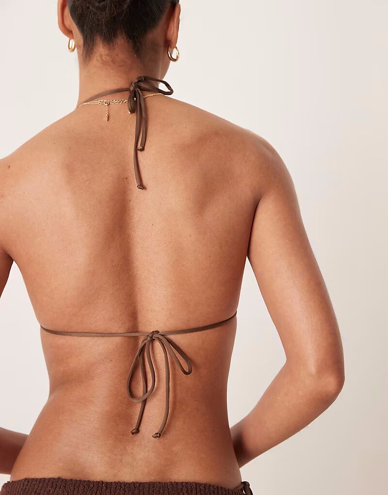Вязаный крючком топ бикини коричневого цвета Stradivarius