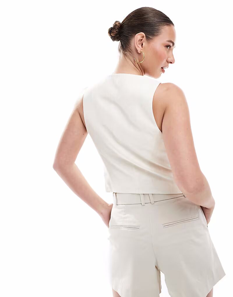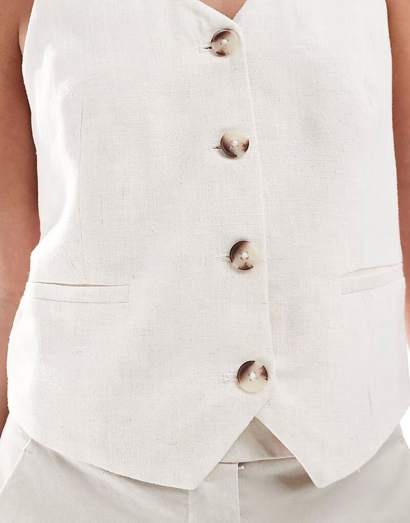 Жилет из льняного материала цвета кремовый Stradivarius