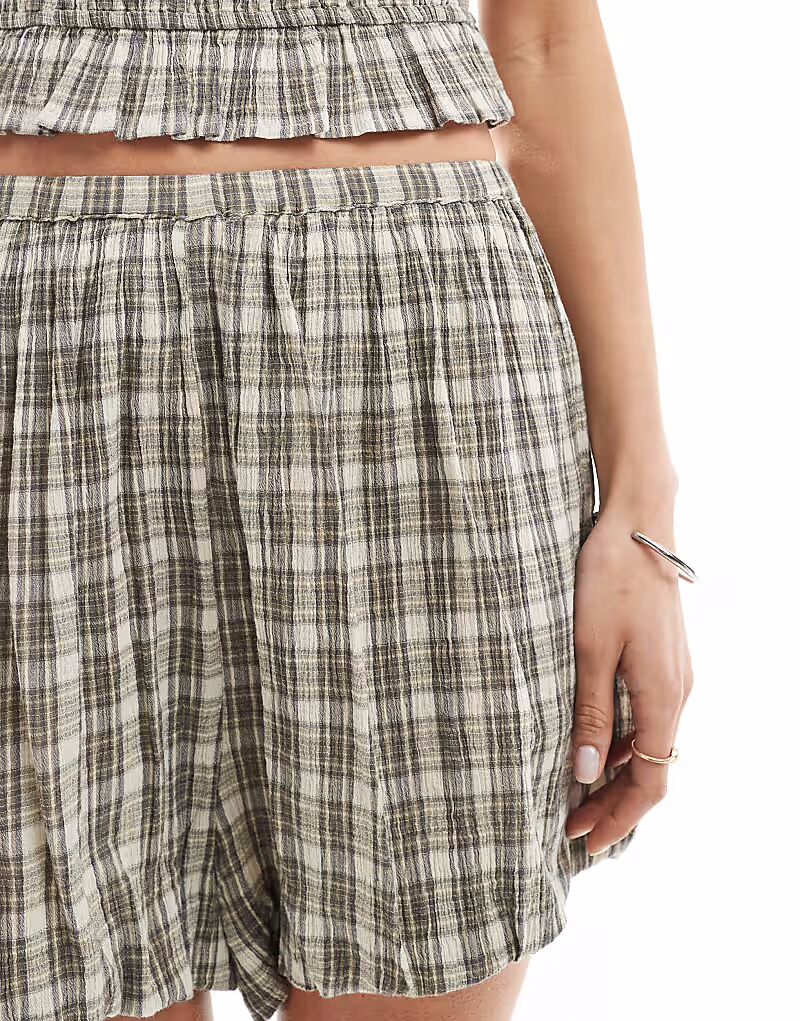 Шорты STR с пузырьковым подолом в клетку Stradivarius, мультиколор