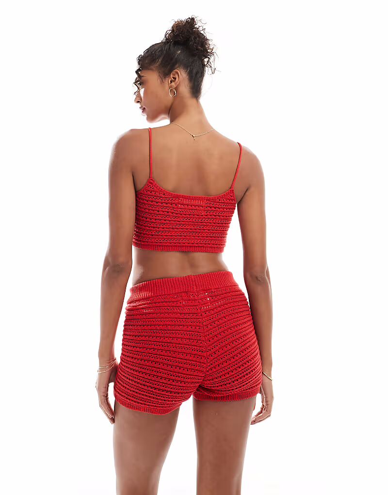 Вязаные крючком мини-шорты-коорд красного цвета Stradivarius