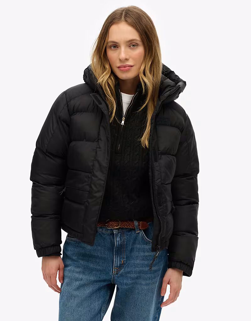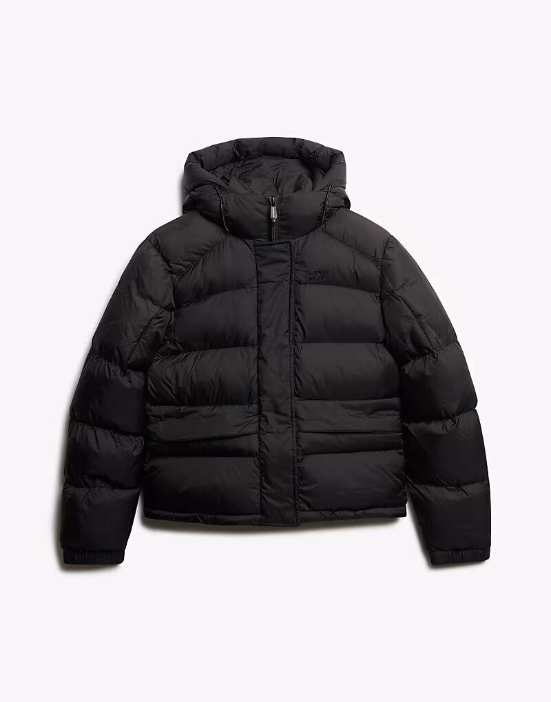 Куртка-пуховик Black с капюшоном черного цвета Superdry