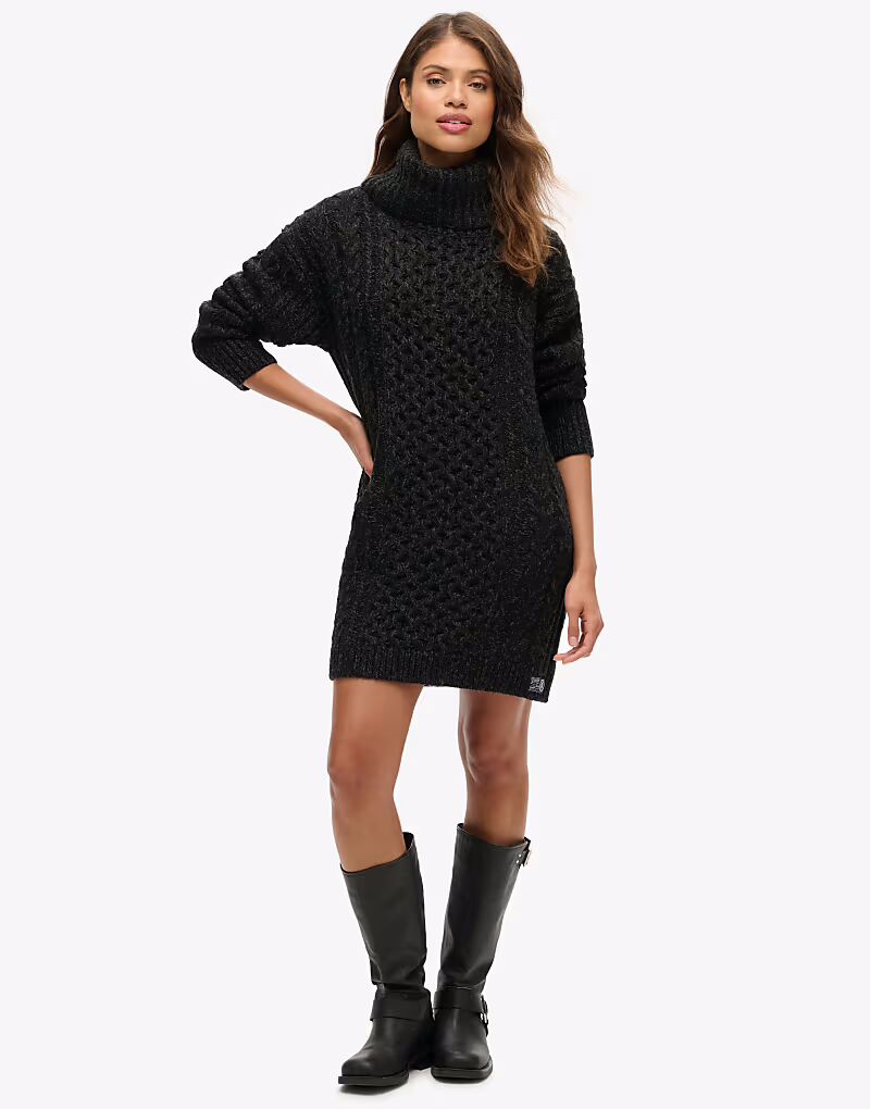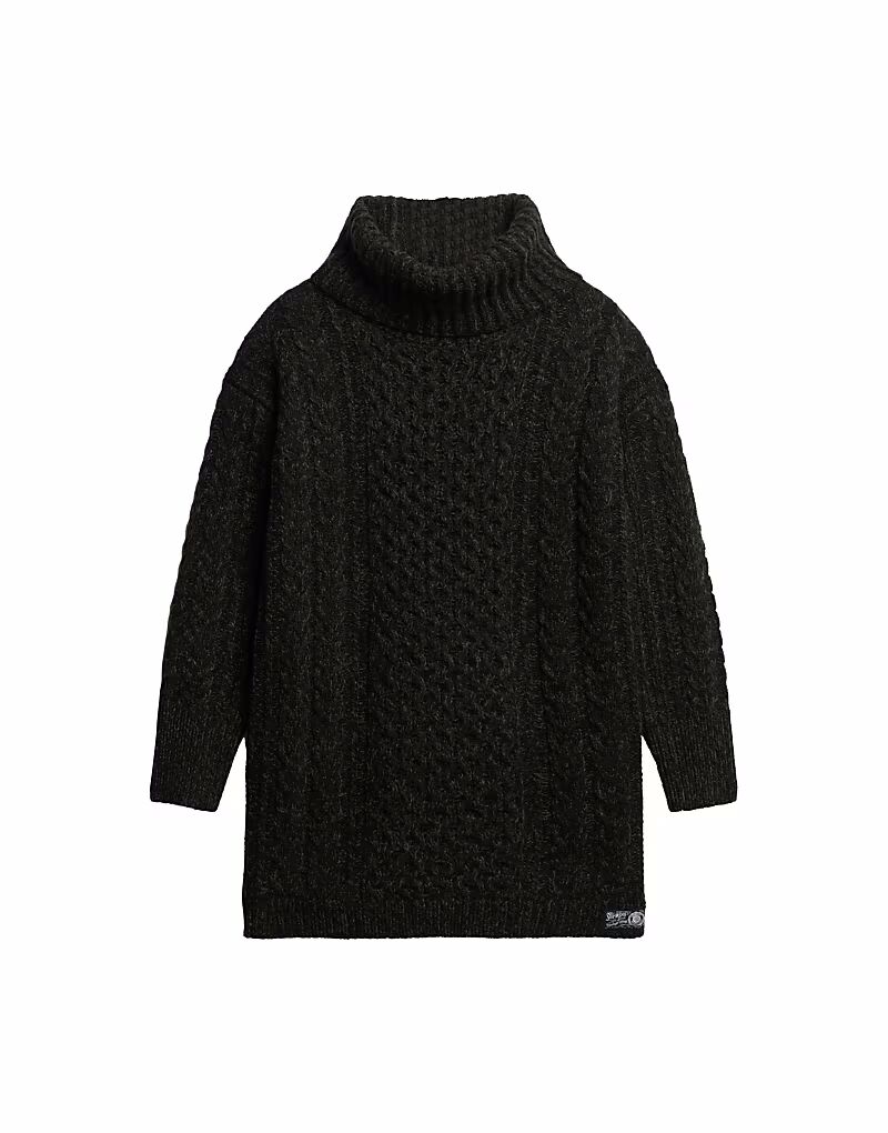 Платье-джемпер с высоким воротом и косами, черное, витое Superdry