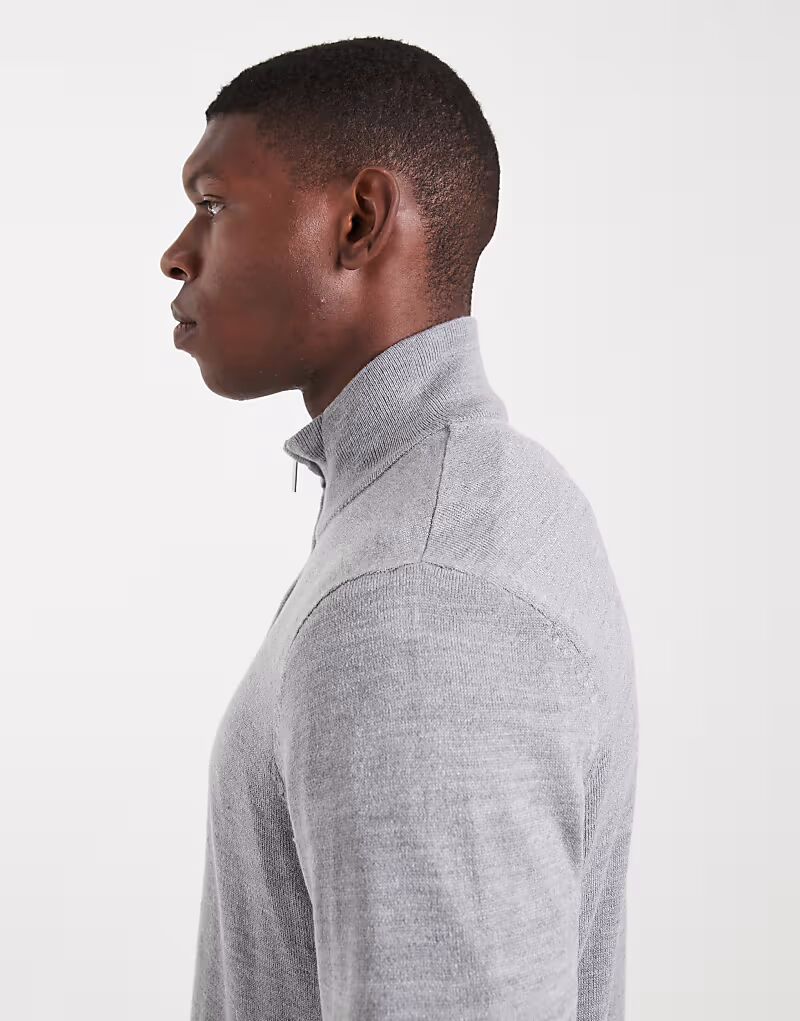 Джемпер с застежкой-молнией 1/4 светло-серого цвета Threadbare
