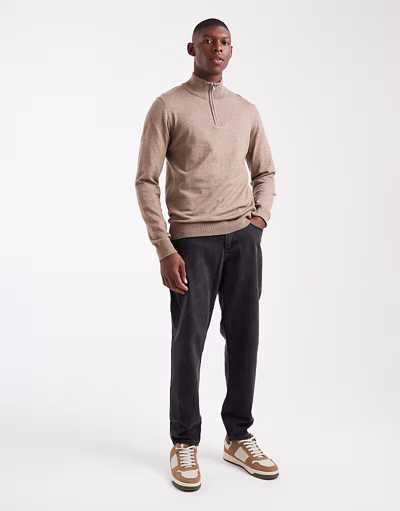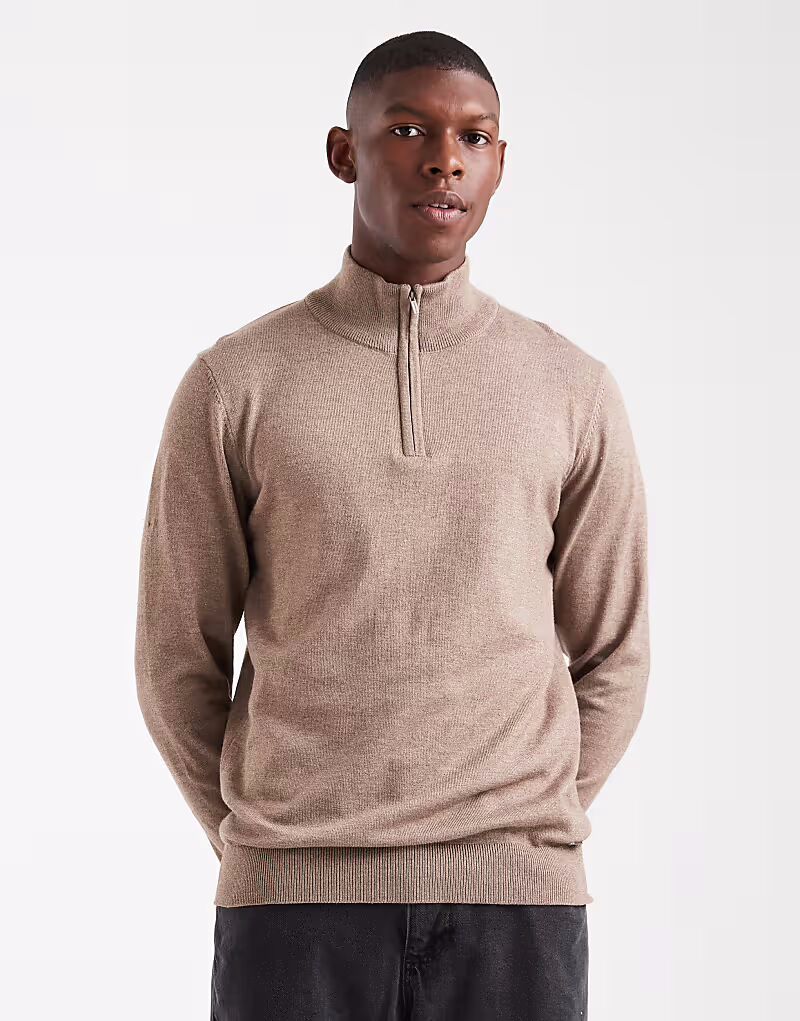 Вязаный джемпер с застежкой-молнией 1/4 Threadbare, темно-серый