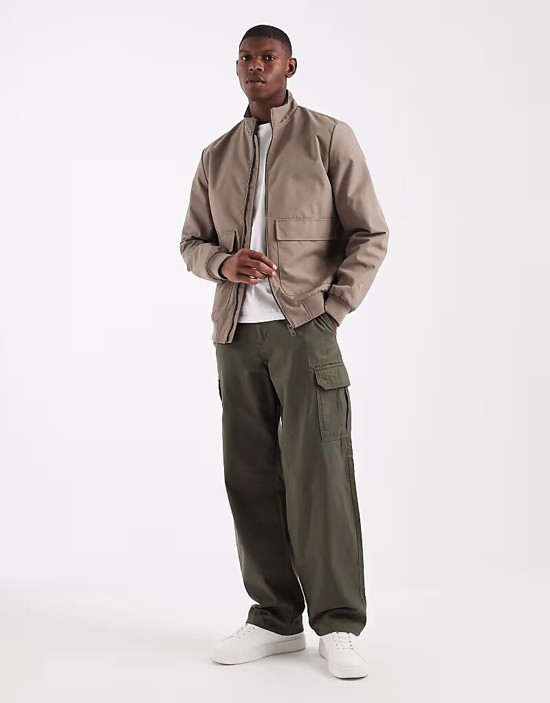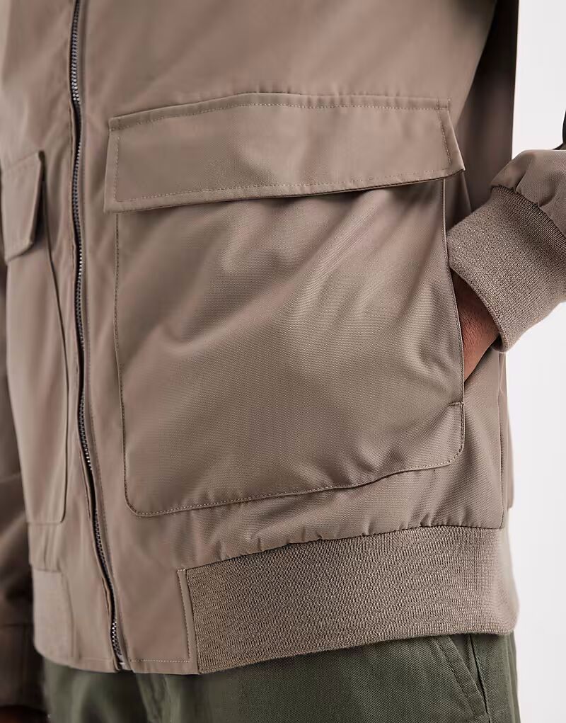 Потертая куртка-бомбер с передними карманами серо-коричневого цвета Threadbare