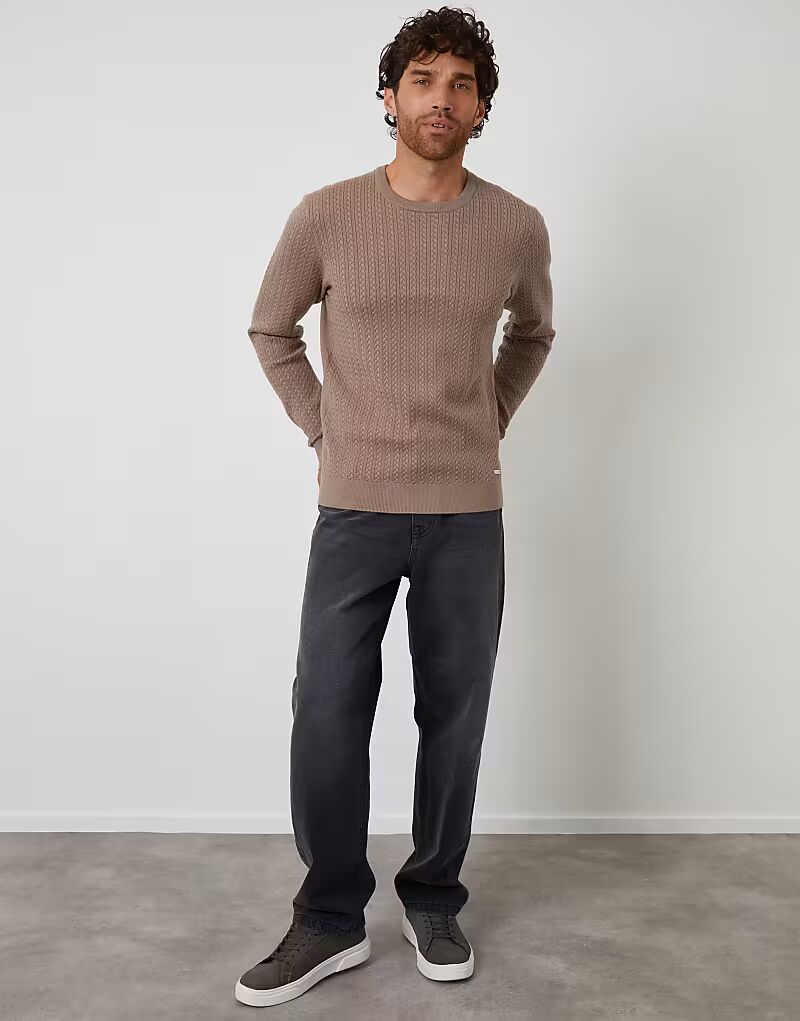 Джемпер Cable с круглым вырезом в рубчик, серо-коричневый Threadbare